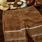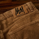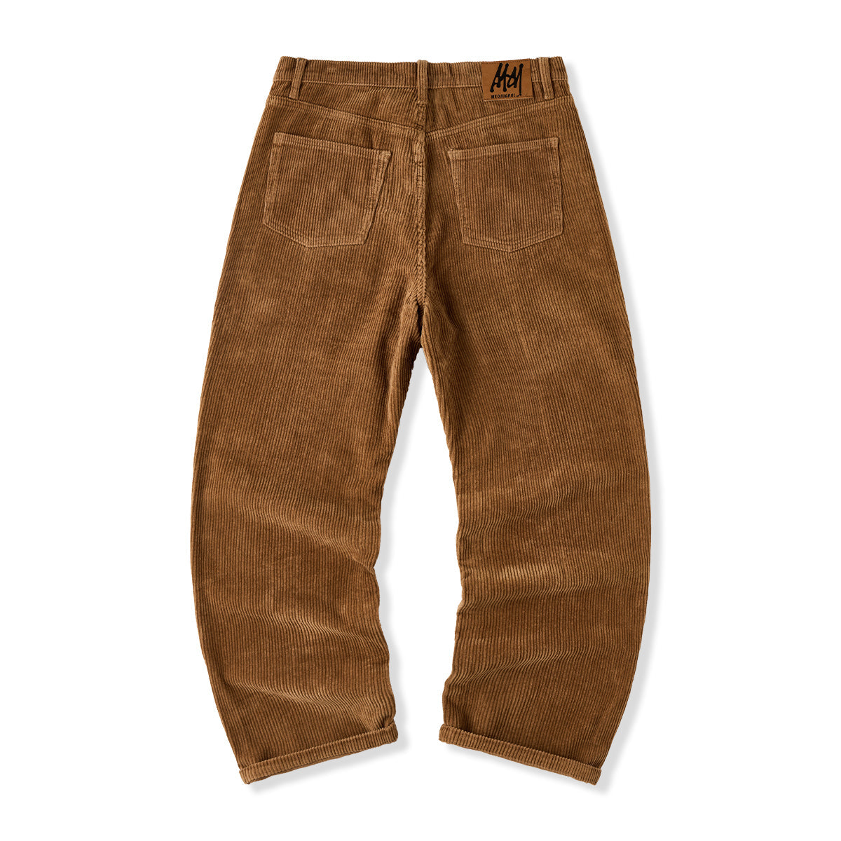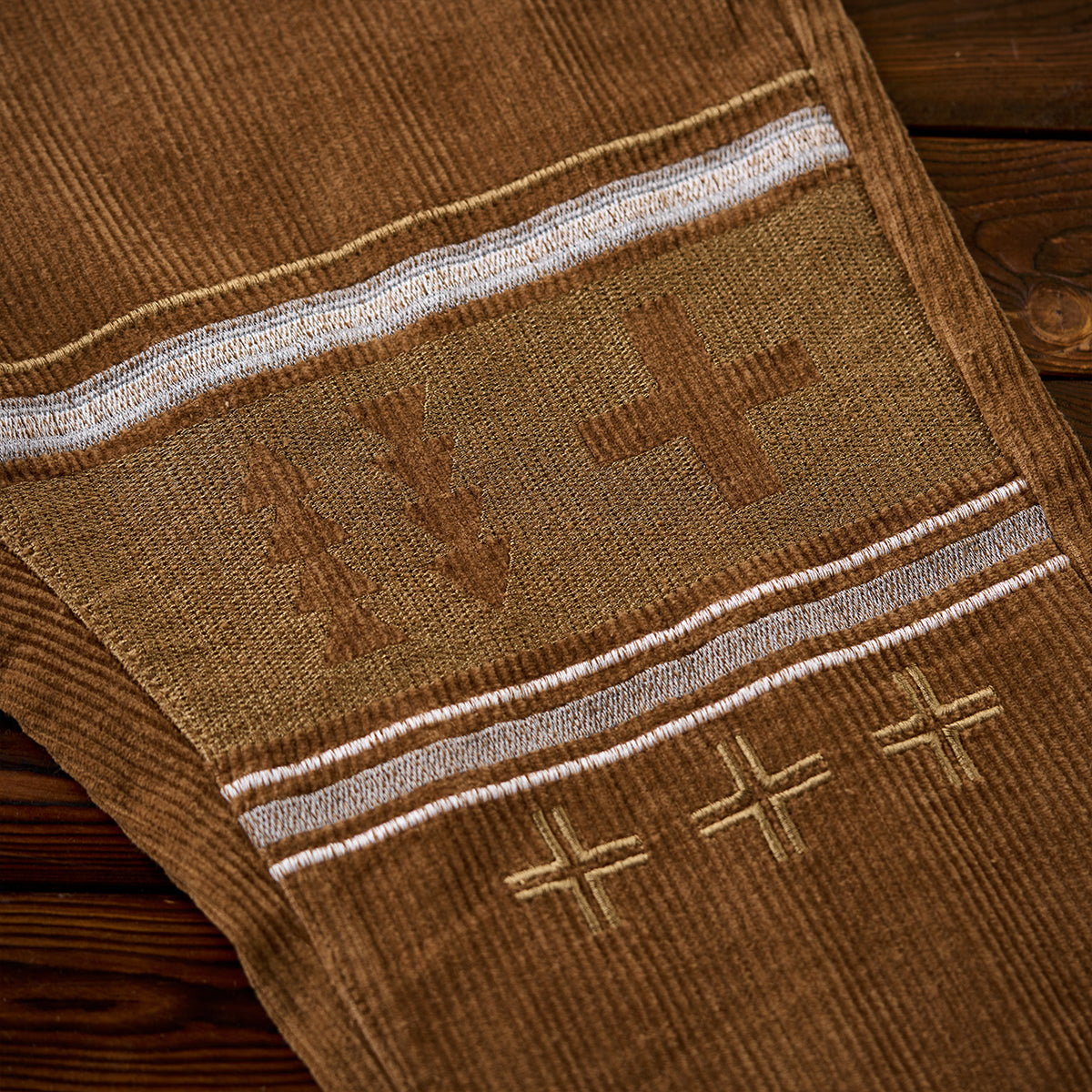 무릎 기하학 자수가 돋보이는 코듀로이 슬랙스. 여유로운 허리 라인과 테이퍼드 핏으로 캐주얼부터 세미 포멀까지 폭넓게 스타일링 가능합니다.