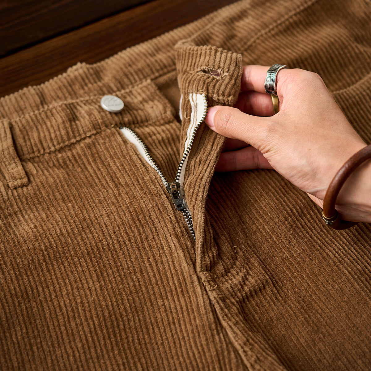 면·폴리·비스코스 혼방 코듀로이 원단으로, 부드러움과 편안함, 형태 안정성, 은은한 광택감을 모두 갖춘 탄탄한 착용감을 제공합니다.