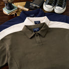 폴로 칼라와 원버튼 디테일, 리브 처리로 캐주얼과 포멀 스타일 모두 연출 가능한 드롭 숄더 릴랙스핏 스웨트셔츠.