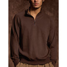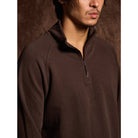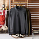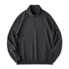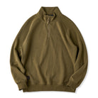 동일 색상의 하프 집업이 포인트인 래글런 스웨트셔츠로, 빈티지한 컬러감이 고급스럽고 캐주얼한 분위기를 연출합니다.