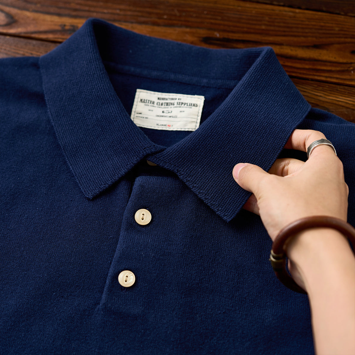 부드러운 코튼 니트 소재로 편안하고 산뜻하게 착용 가능한 폴로셔츠로, 은은한 자개단추가 고급스러운 포인트를 더합니다.