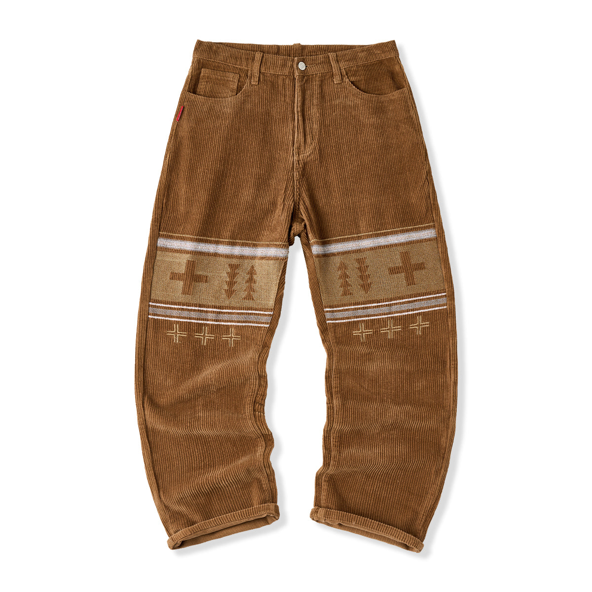 무릎 기하학 자수 코듀로이 캐주얼 팬츠