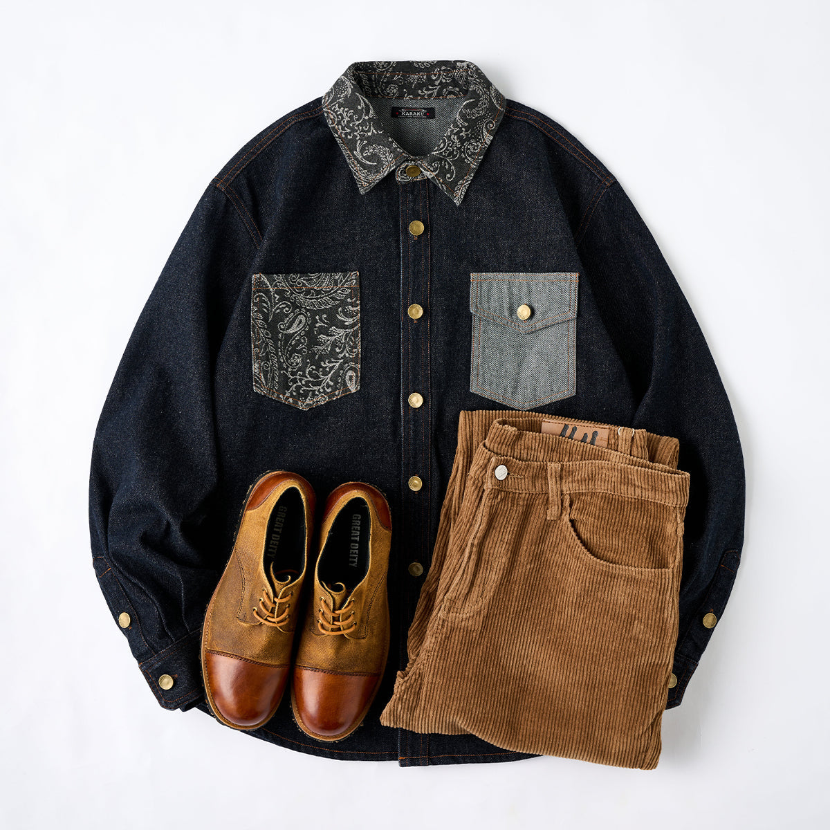 셀비지 파이핑 플랩 포켓 데님 워크 셔츠