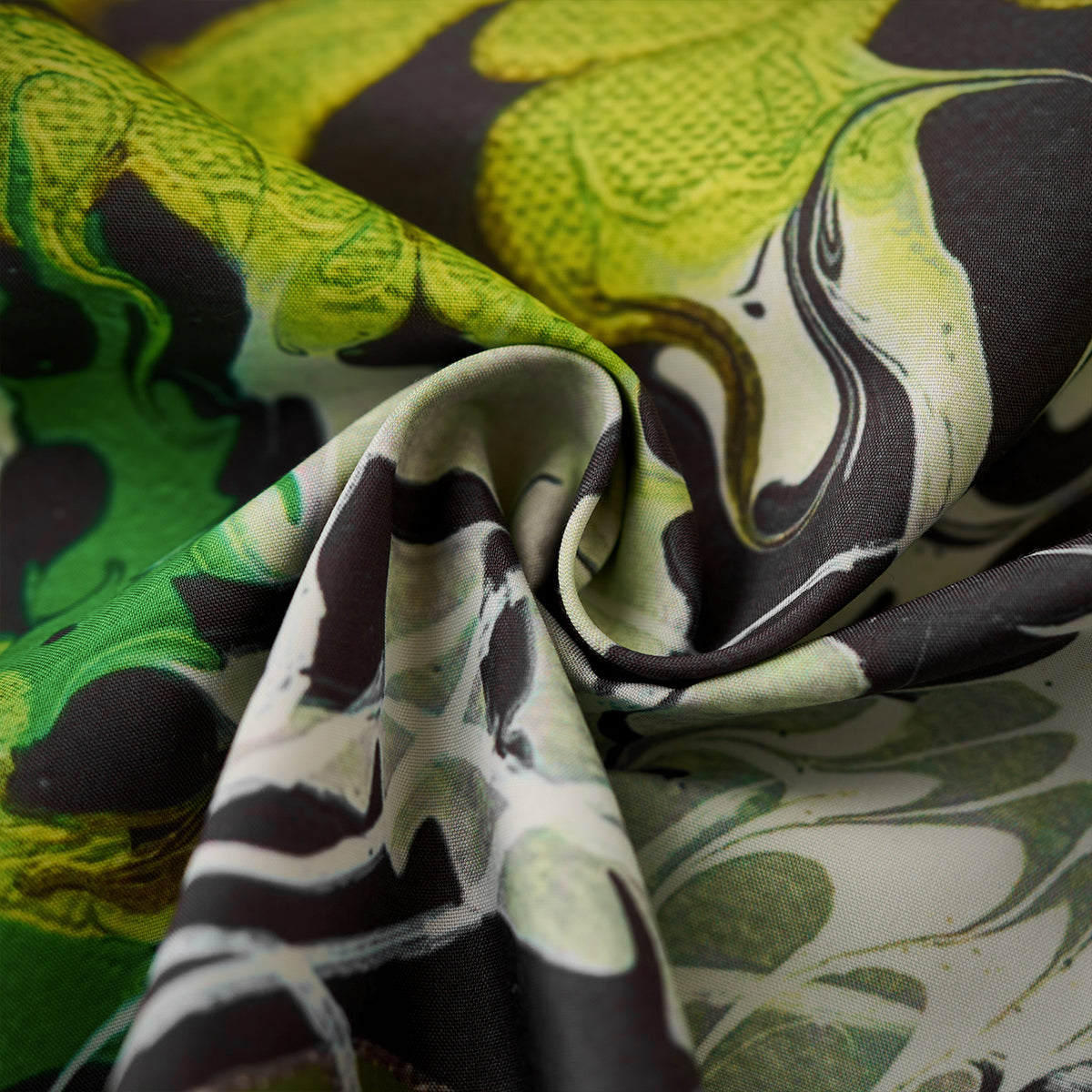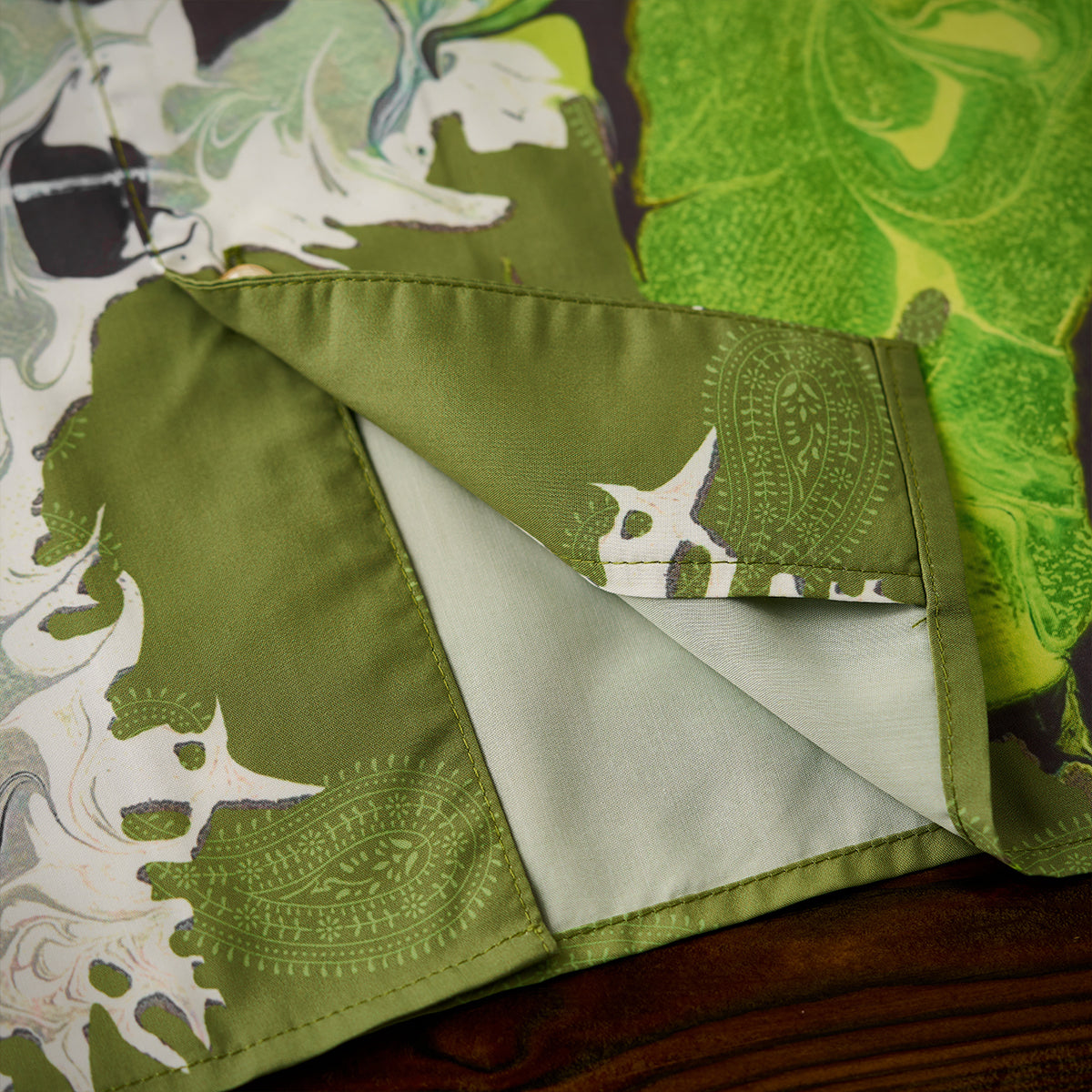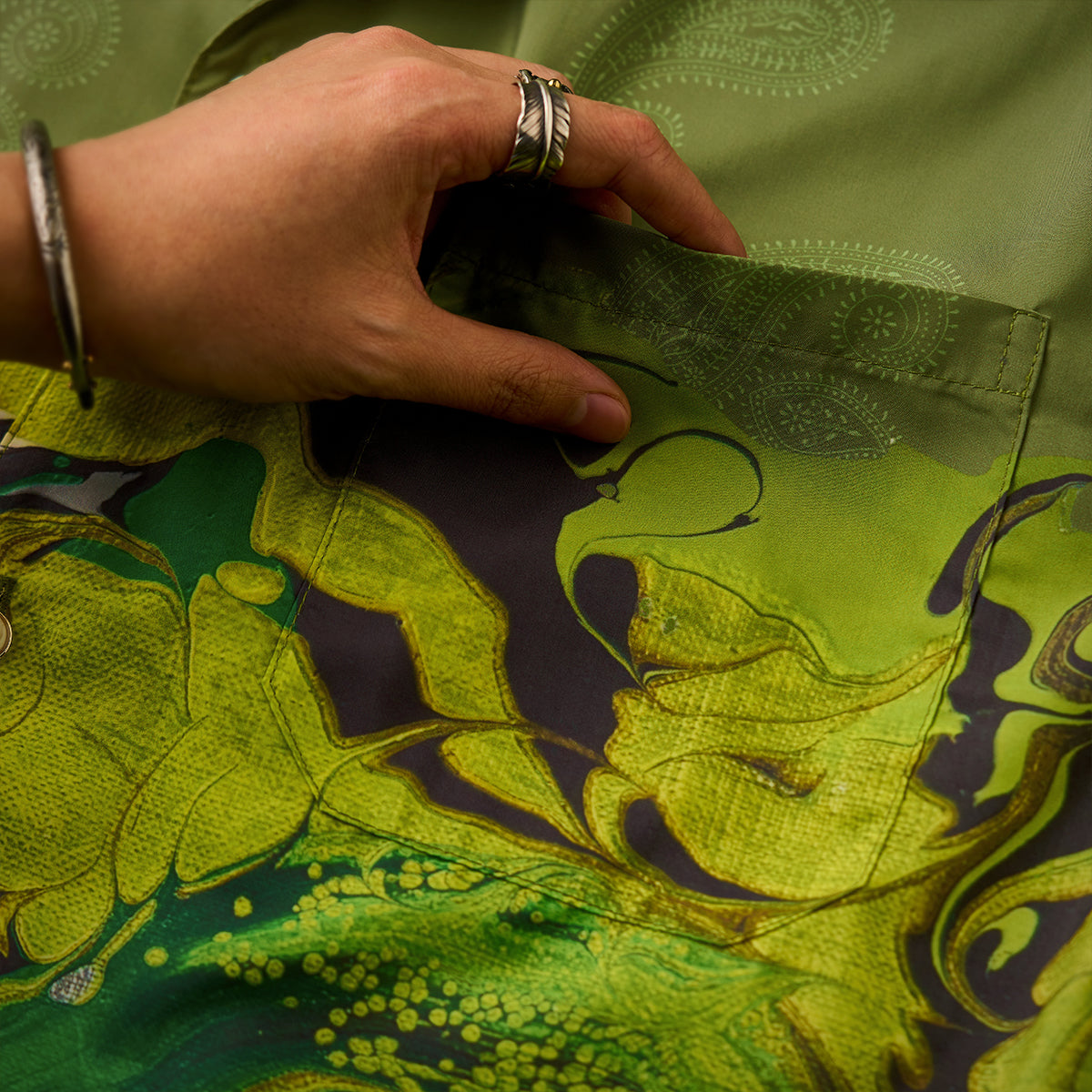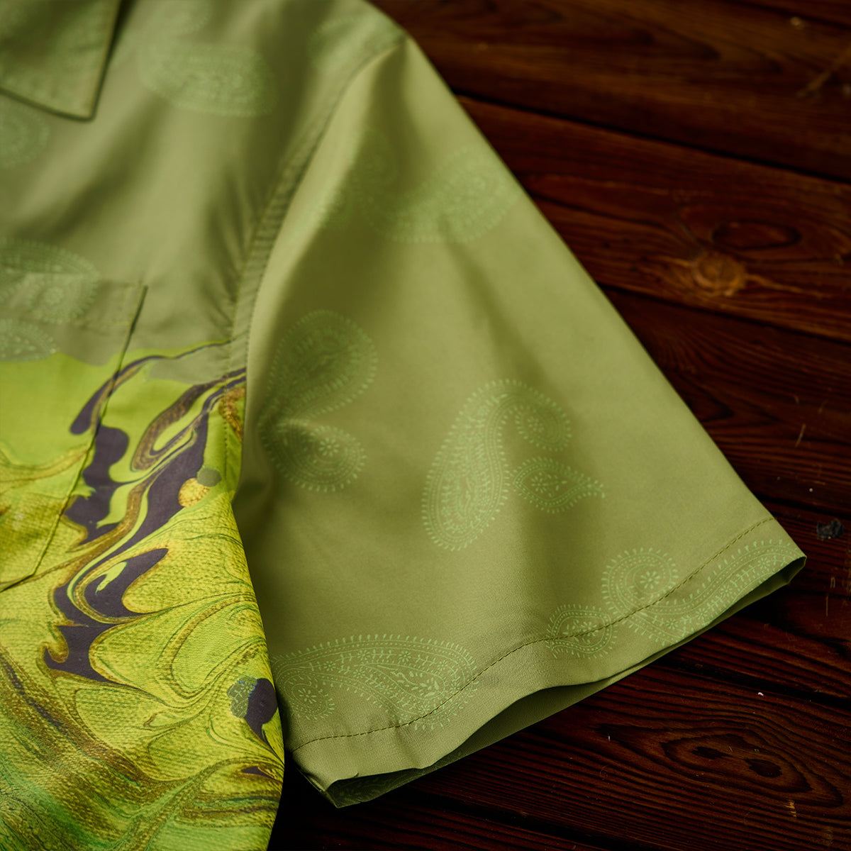 KARAKU×田中ラオウ「Green drift」화이트 아게이트풍 단추 알로하 셔츠