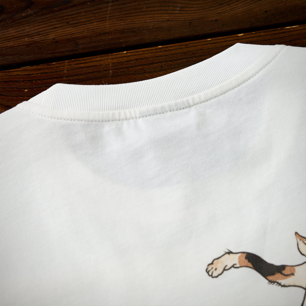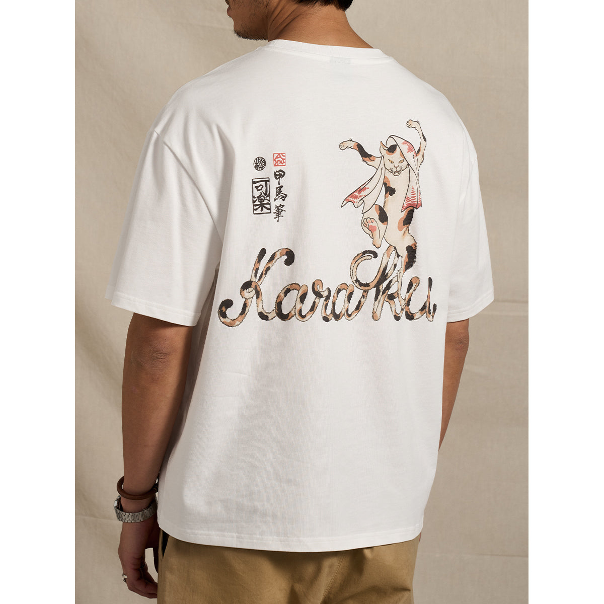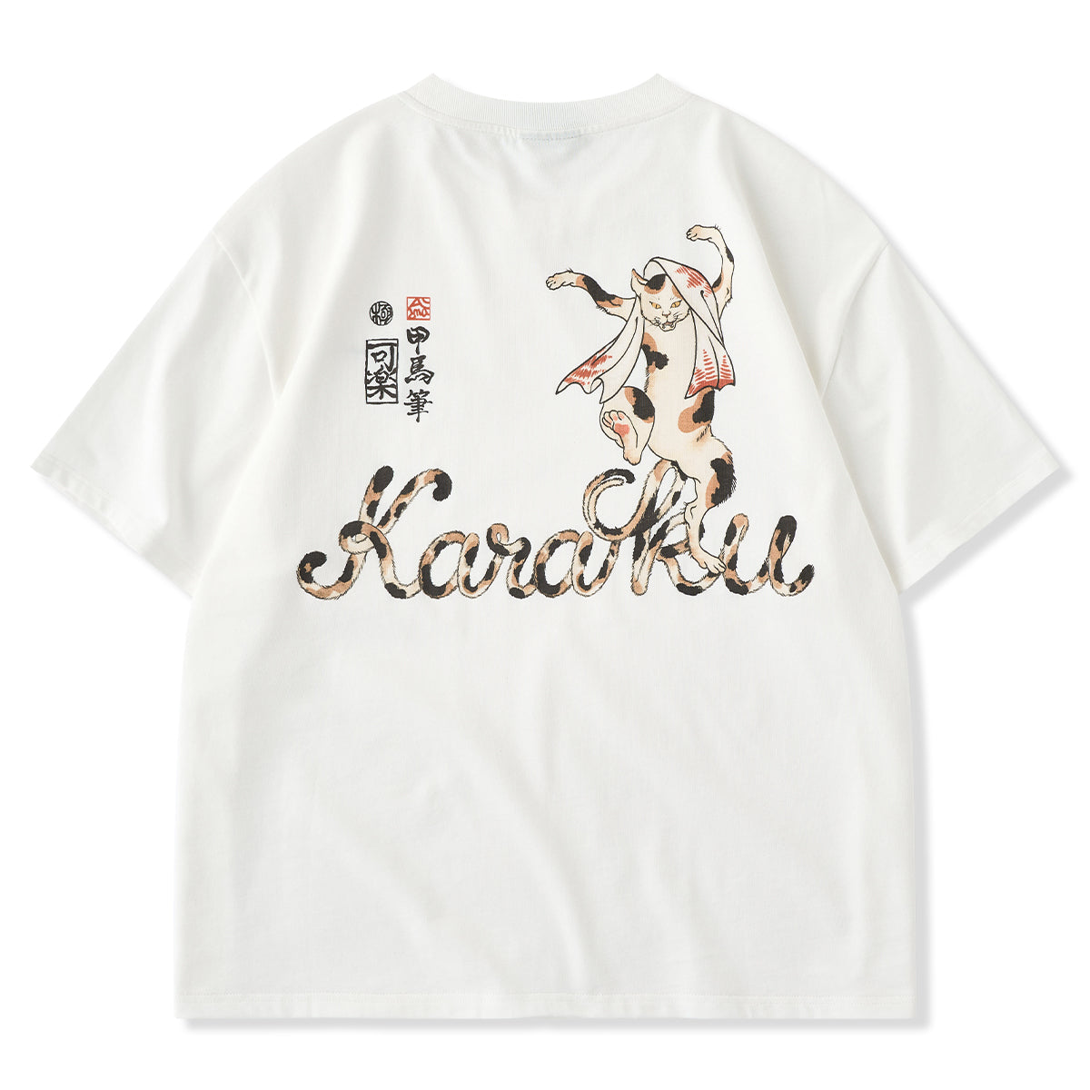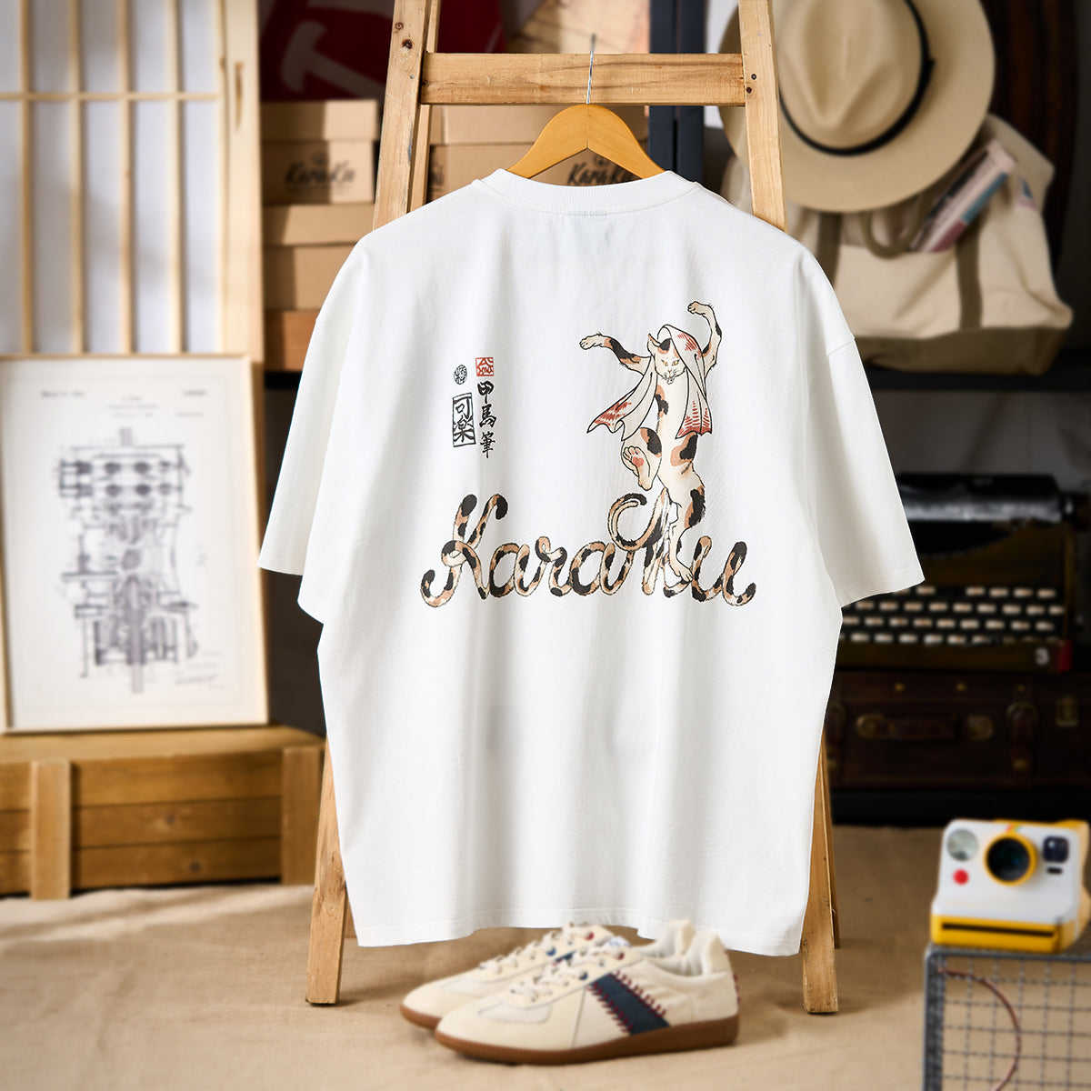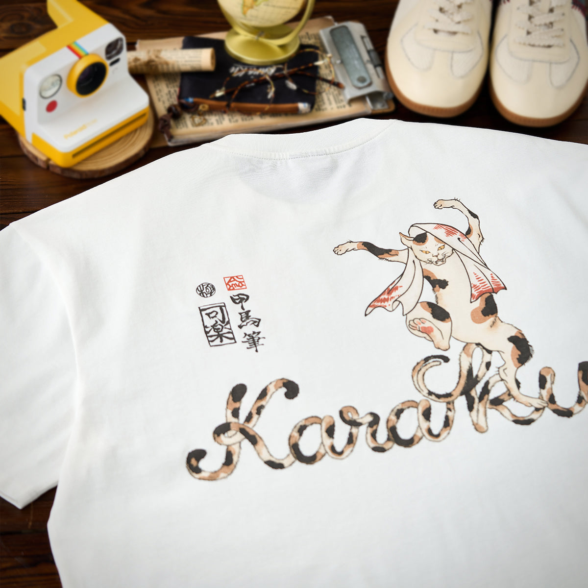 KARAKU×甲馬「이형백물어」춤추는 네코마타 프린트 & 자수 코튼 티셔츠