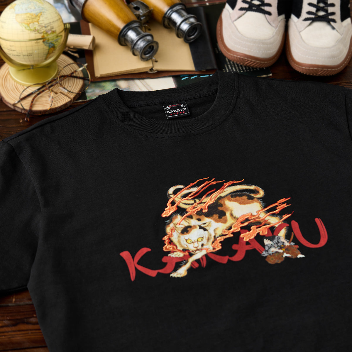 Karaku와 현대 우키요에 아티스트 ‘코마(甲馬)’의 협업으로 제작된 컬렉션입니다. 네코마타와 요괴들이 등장하는 박진감 있는 세계관을 티셔츠와 셔츠에 담아냈습니다.