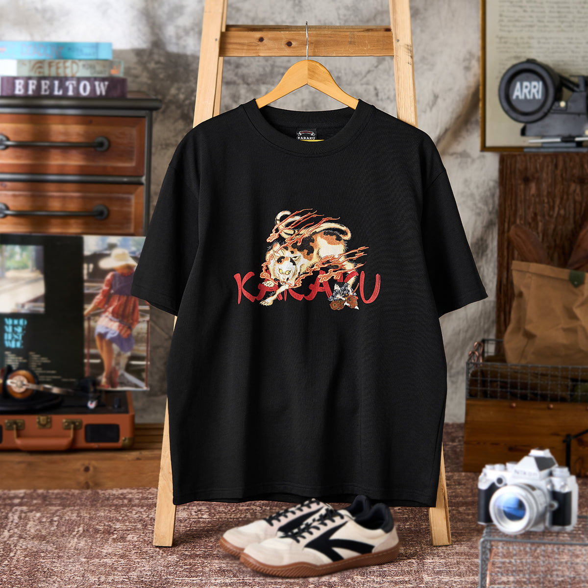 Karaku×甲馬「이형백물어」 프린트 & 자수 코튼 티셔츠