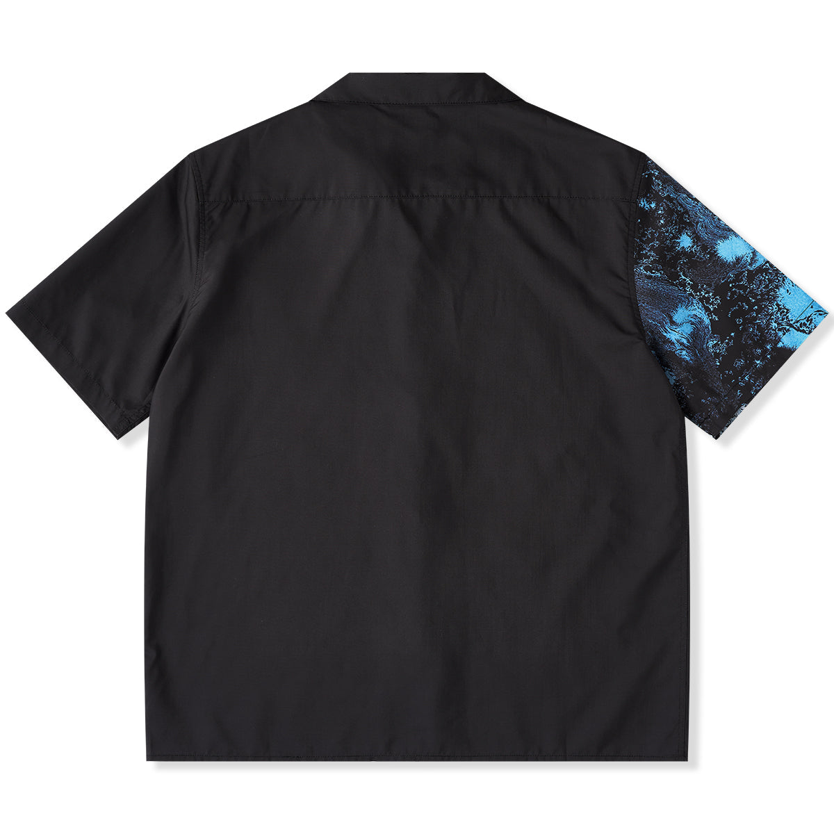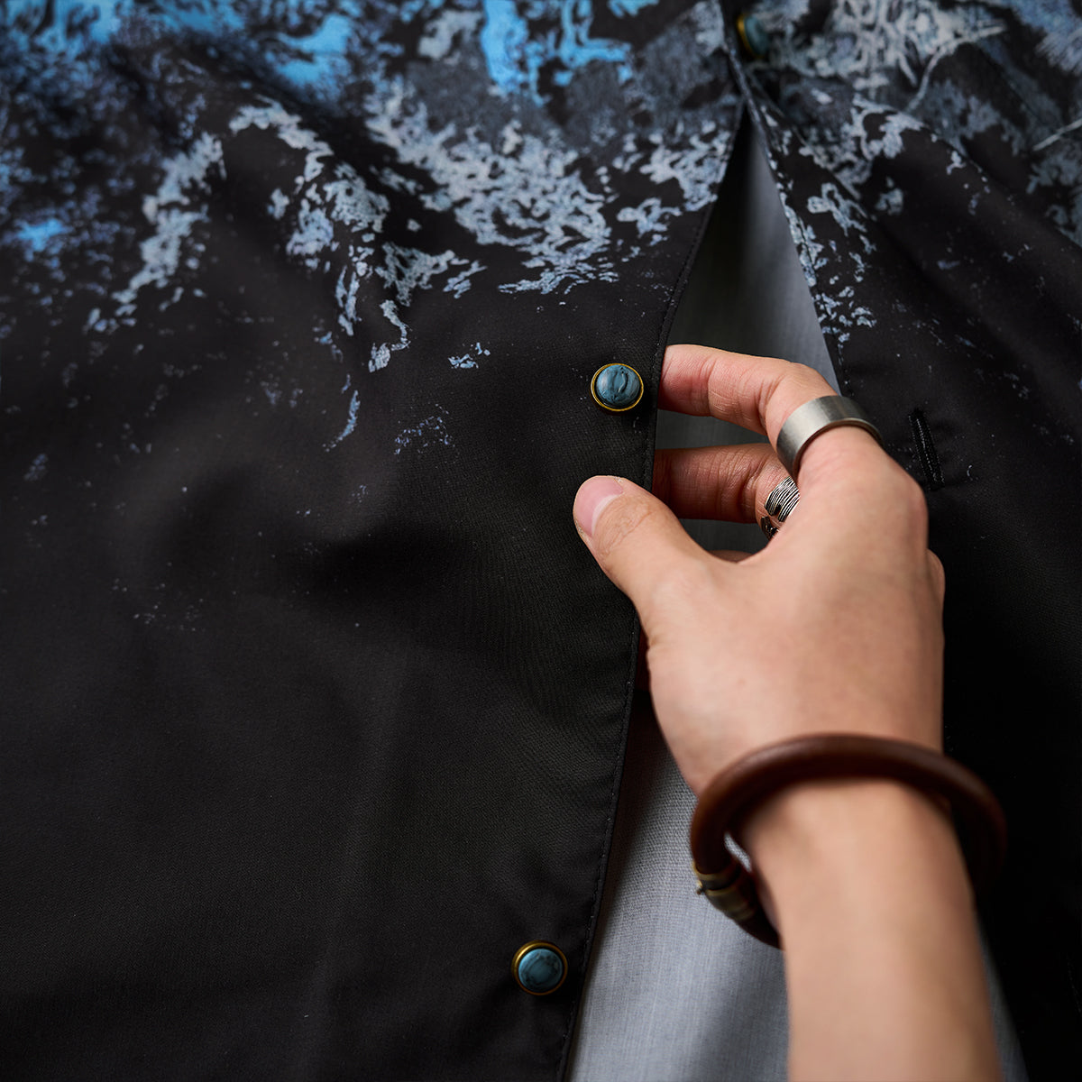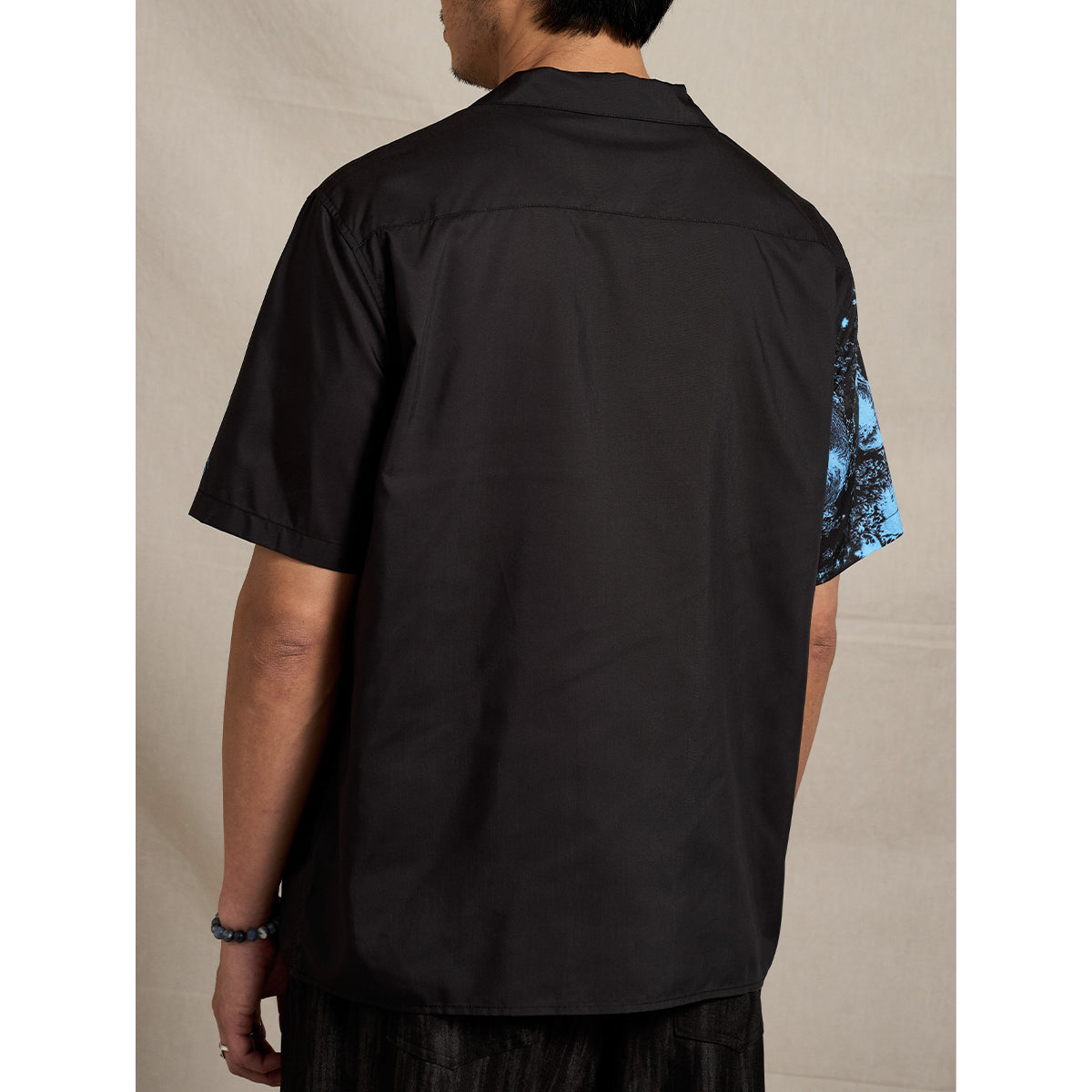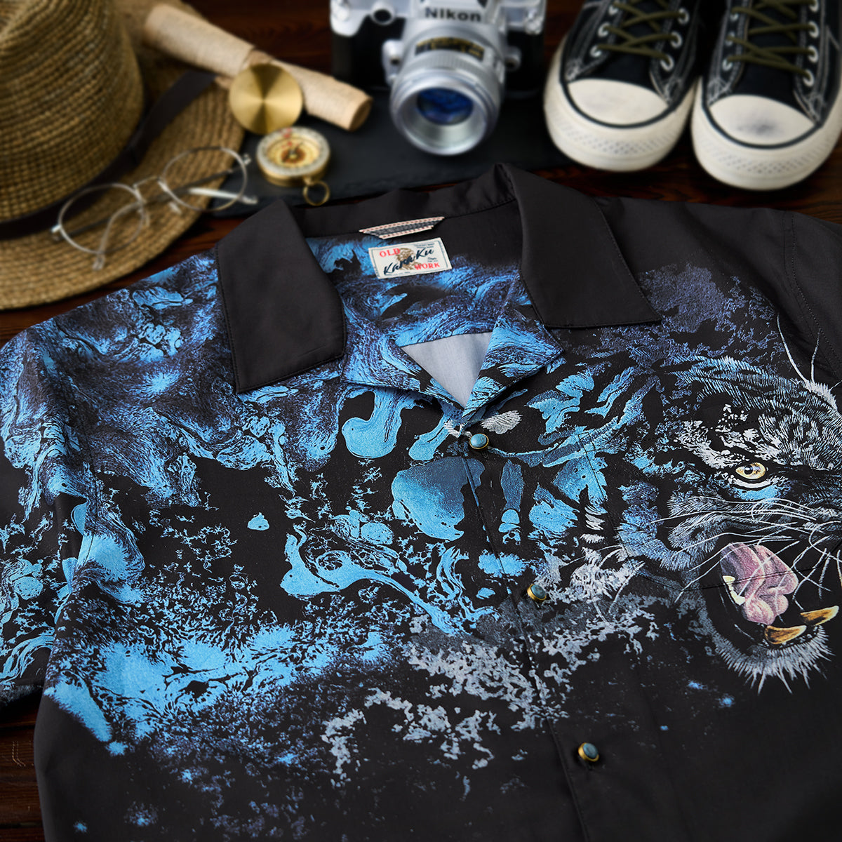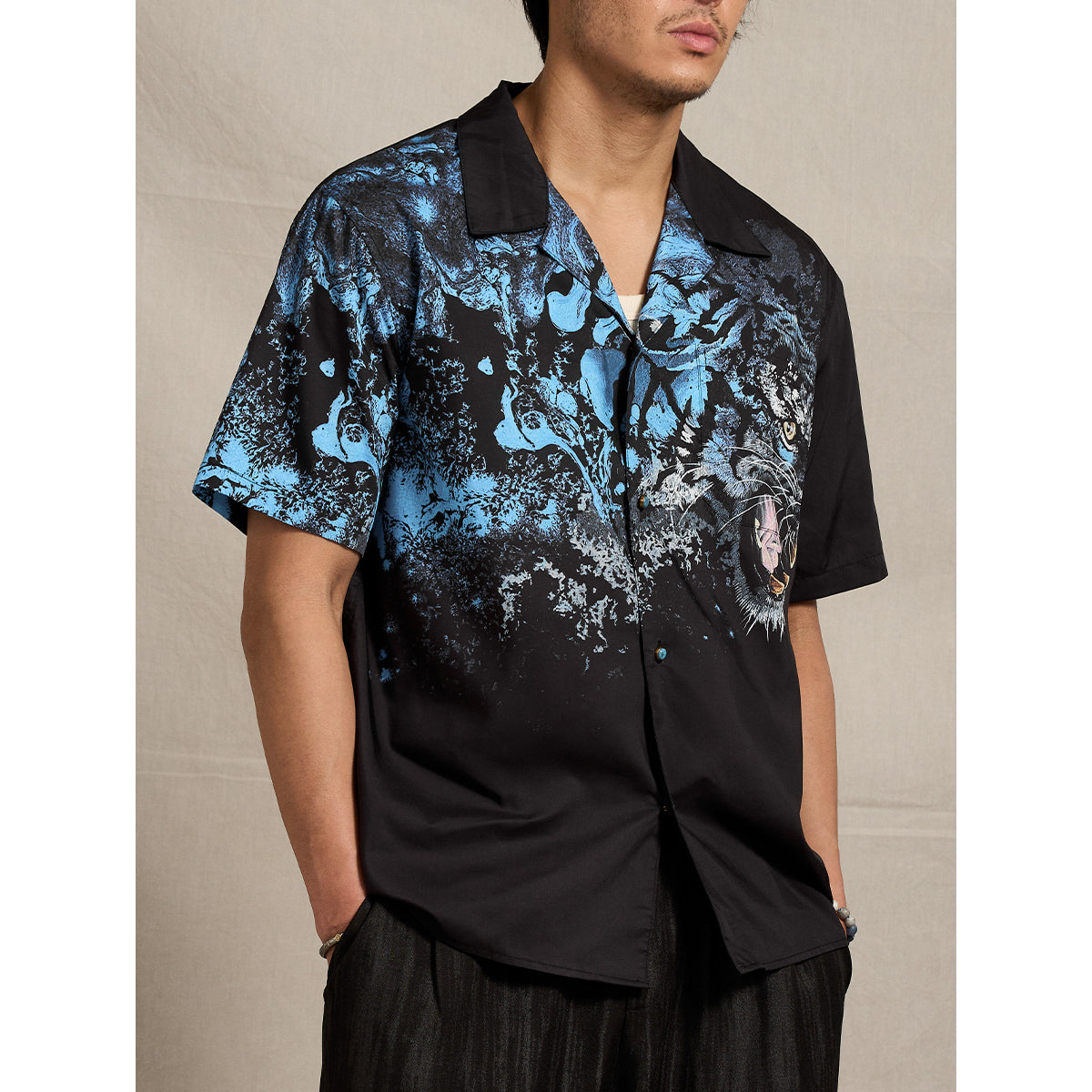 KARAKU×田中ラオウ「Bloom」호랑이 프린트 터키석 단추 쿠바 카라 셔츠