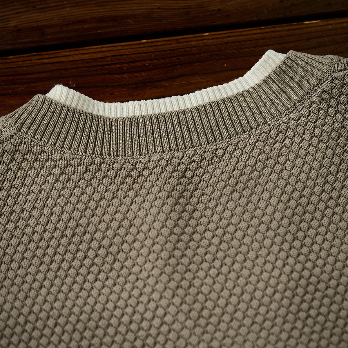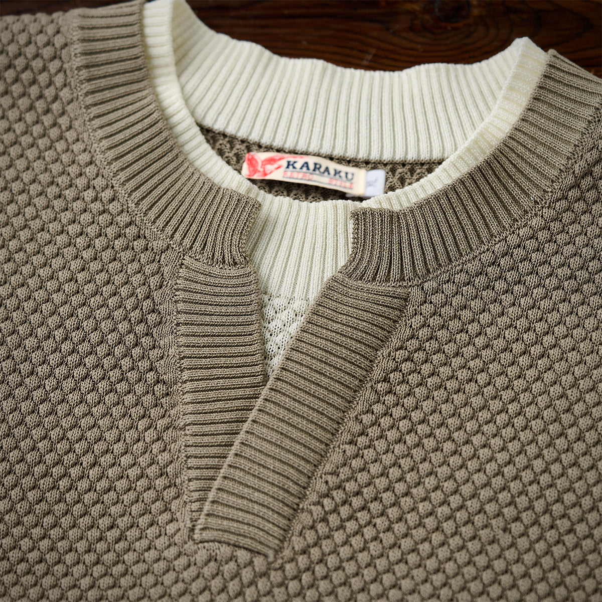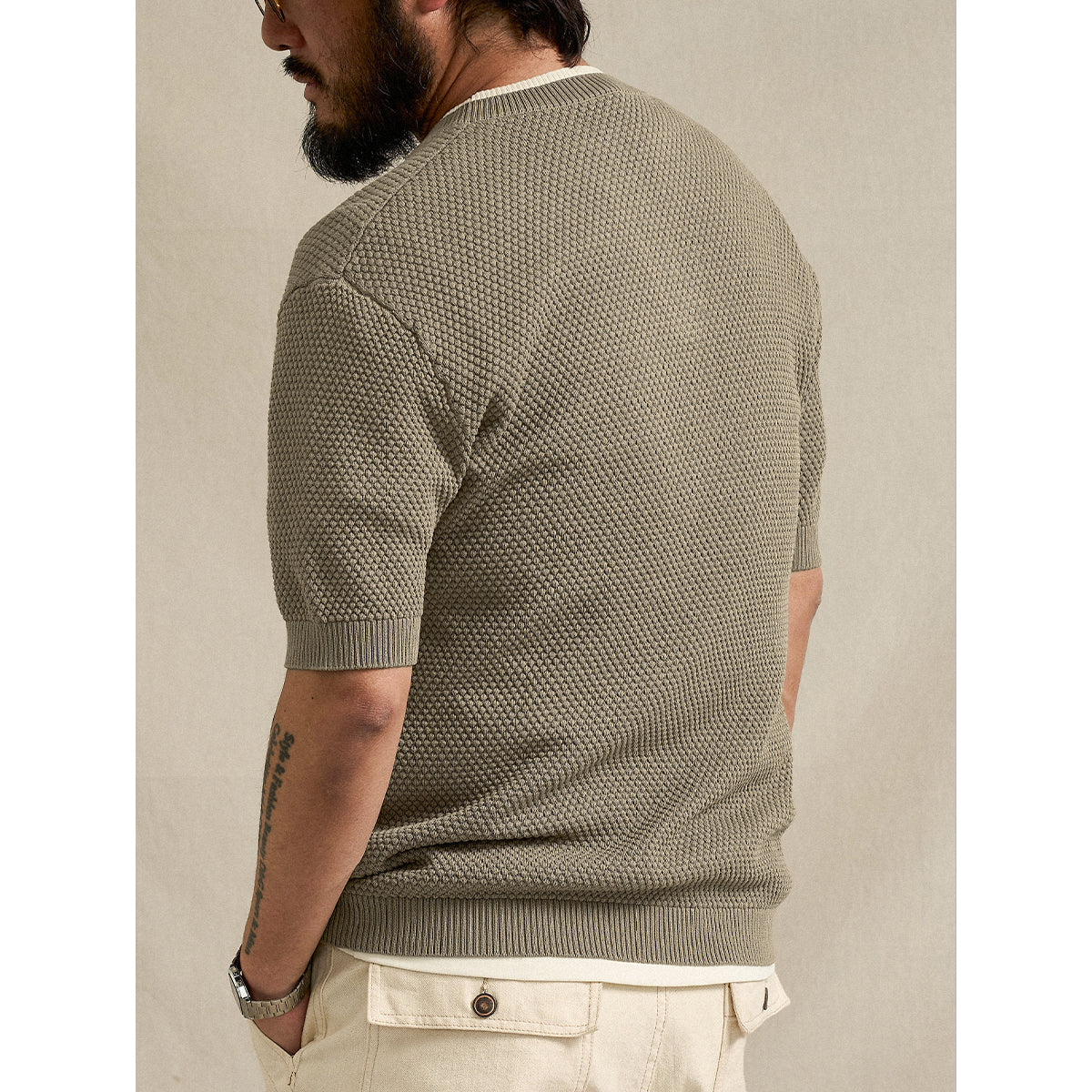 한 장으로 스타일을 완성할 수 있는 페이크 레이어드 니트 티셔츠로,파인애플 파일 편직과 헤비 웨이트 원단으로 입체감과 편안한 착용감을 동시에 제공합니다.