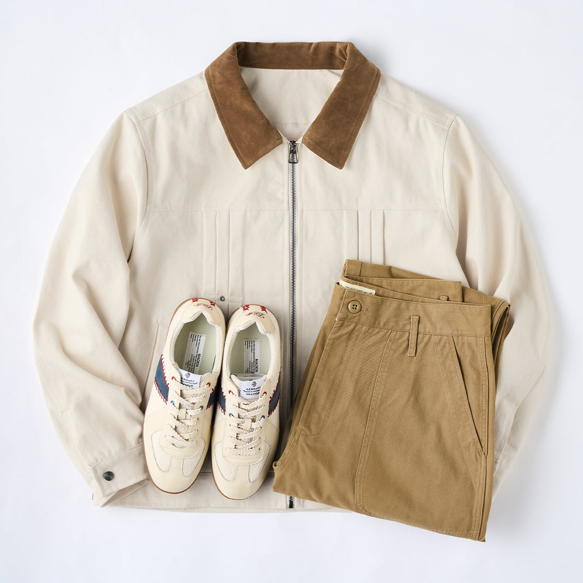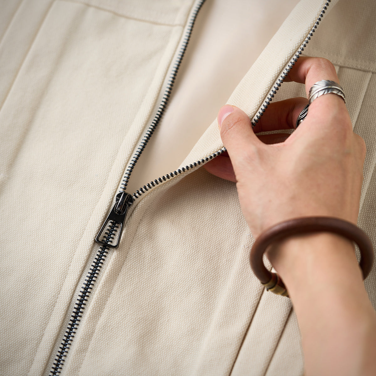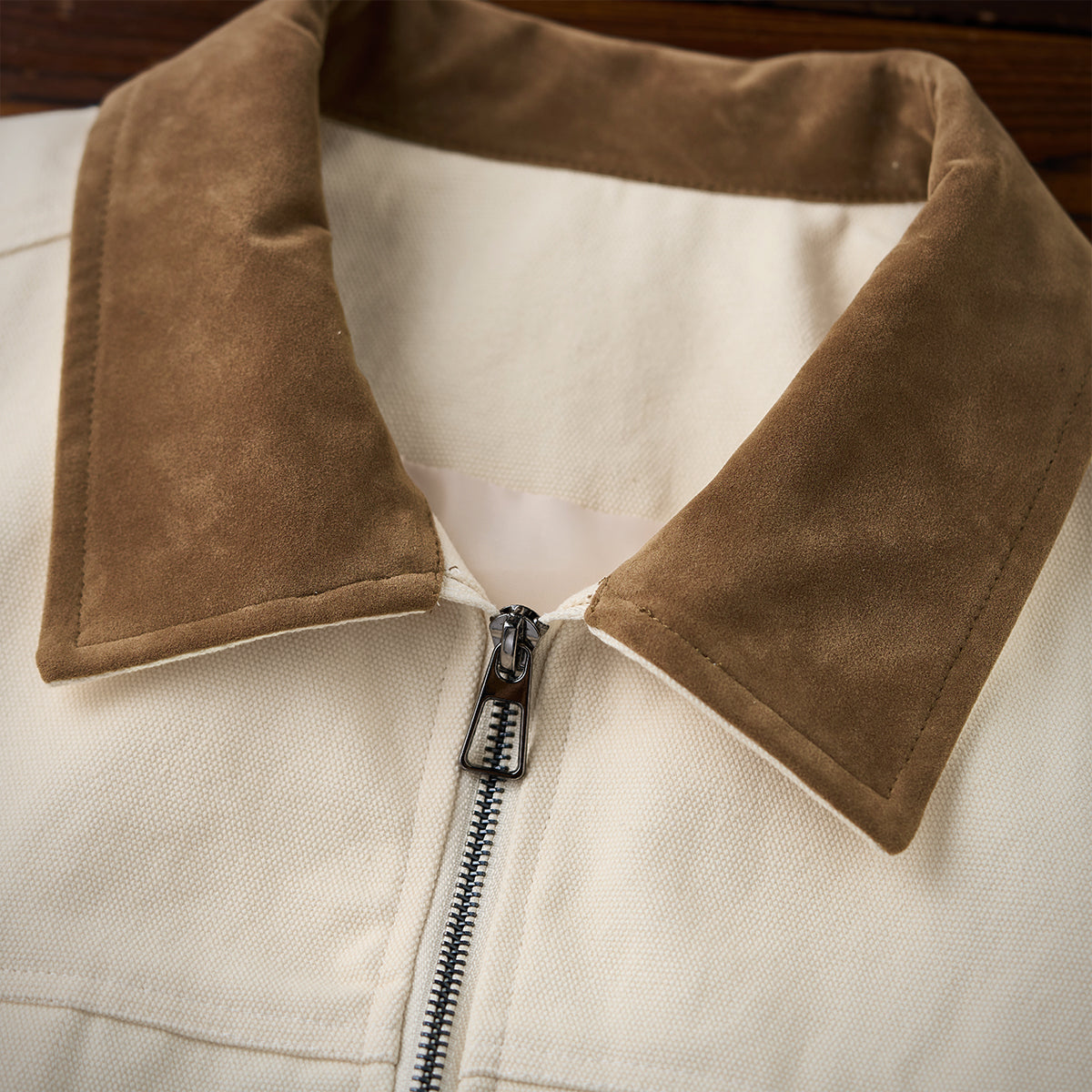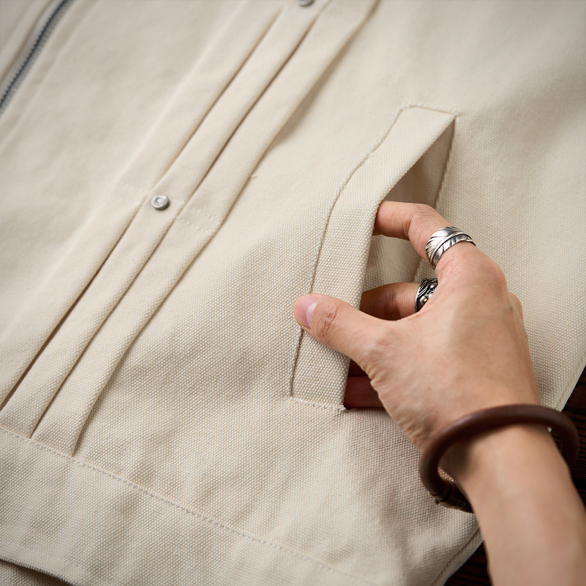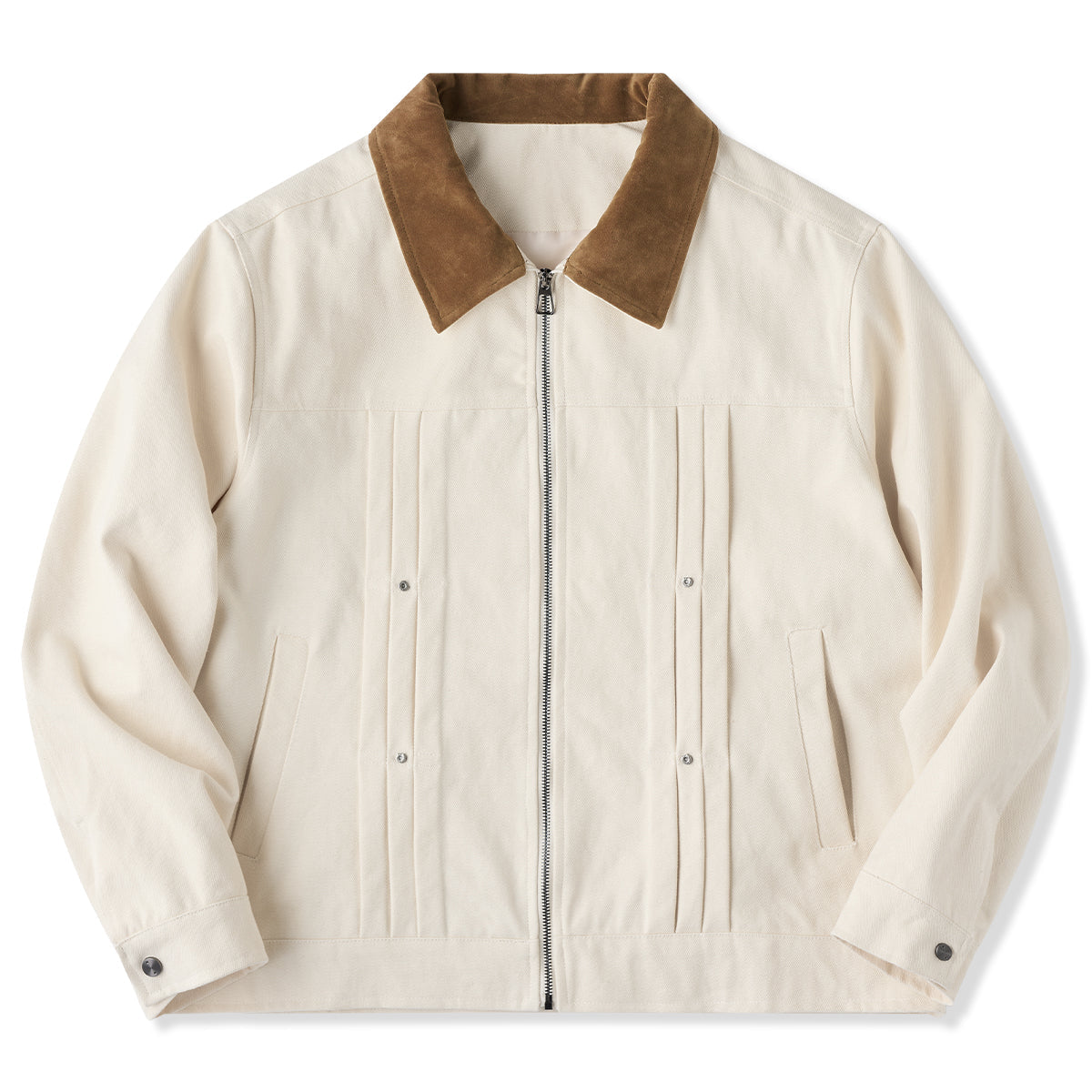 코듀로이 칼라 배색 핀턱 가공 헤비웨이트 캔버스 자켓