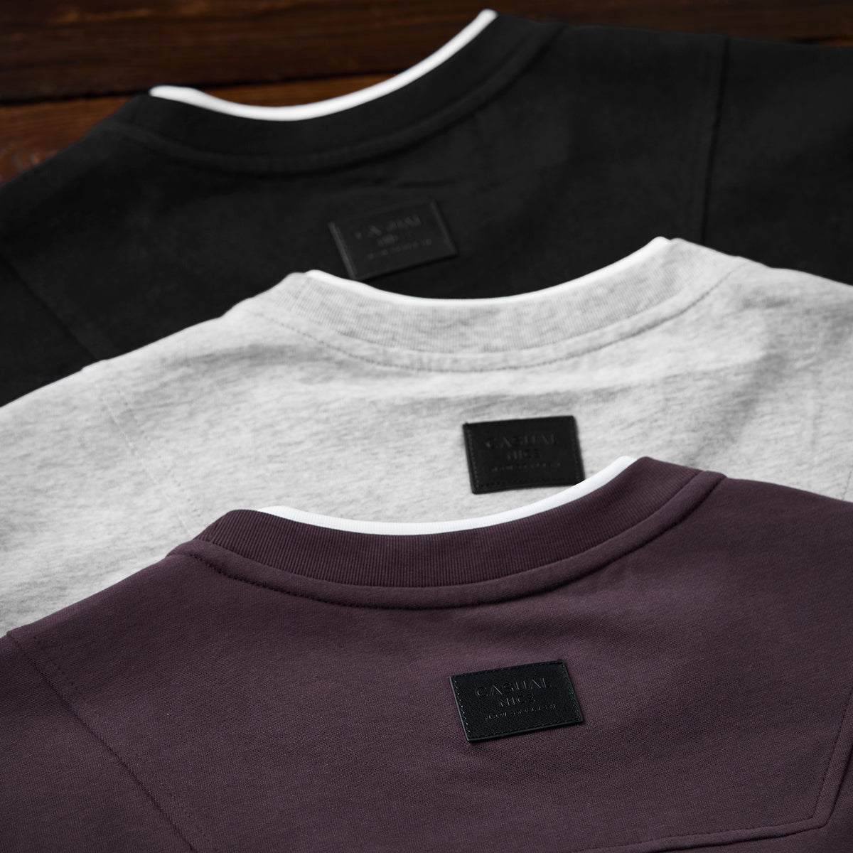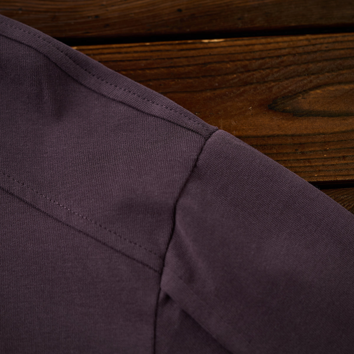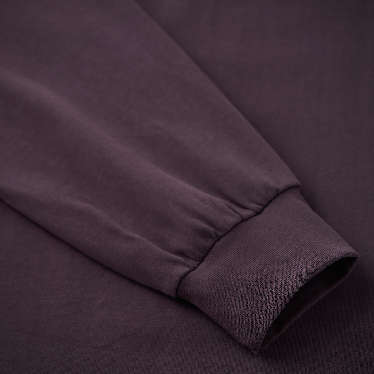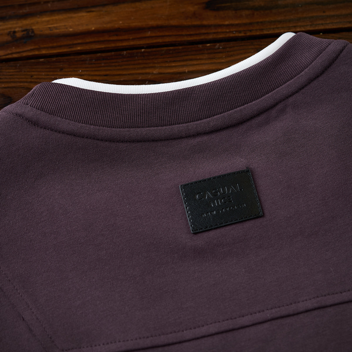 목과 밑단의 레이어드 디자인으로 깊이 있는 스타일을 완성한 롱티입니다. 라글란 슬리브로 편안함과 활동성을 더했습니다.