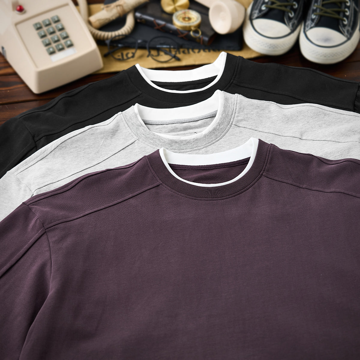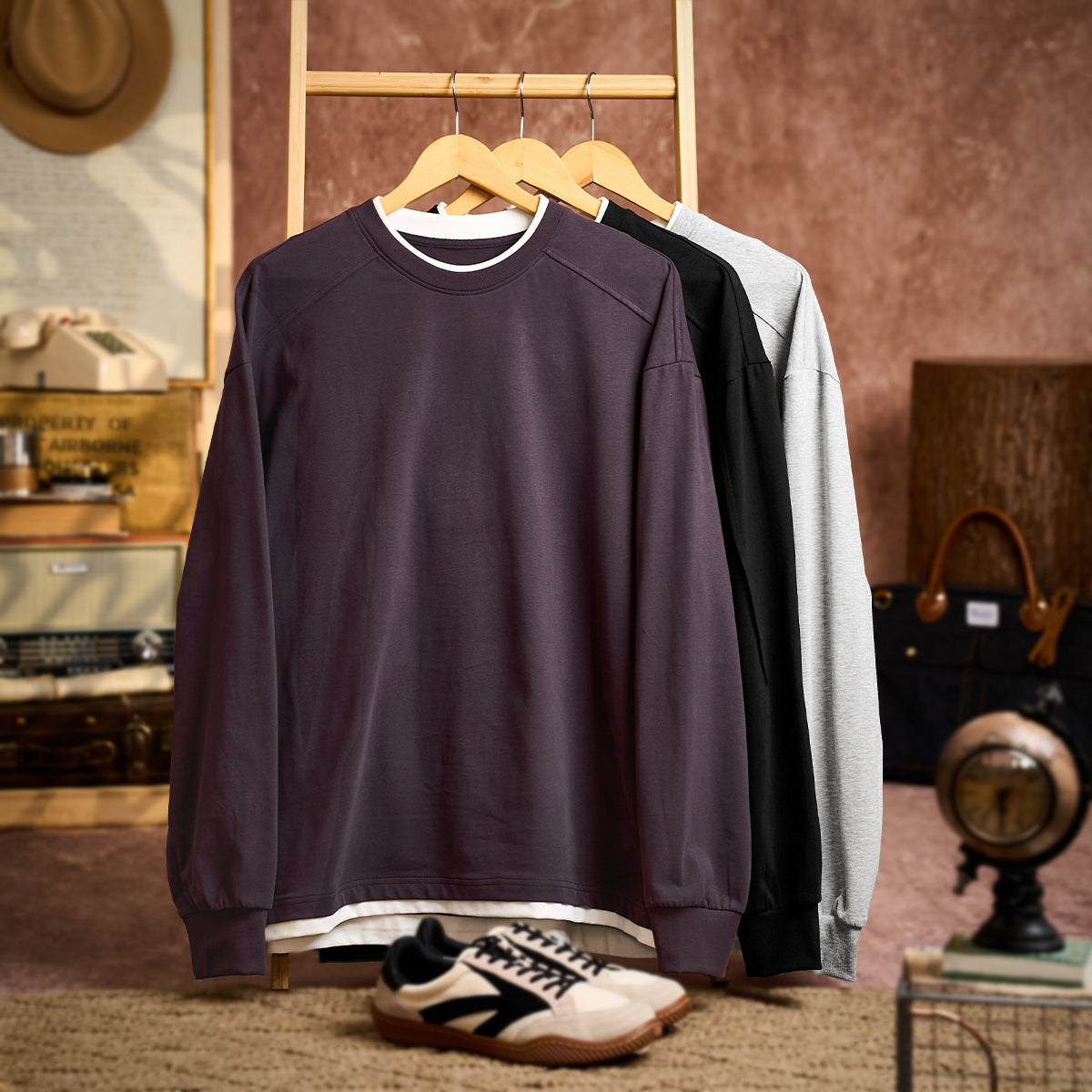3컬러 페이크 레이어드 코튼 라글란 긴팔 티셔츠