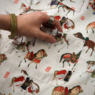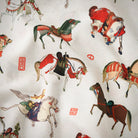 세밀하게 그려진 말과 균형 잡힌 패턴 배치, 흰 배경으로 모티브의 색상과 전통적 아름다움이 돋보이는 디자인입니다.
