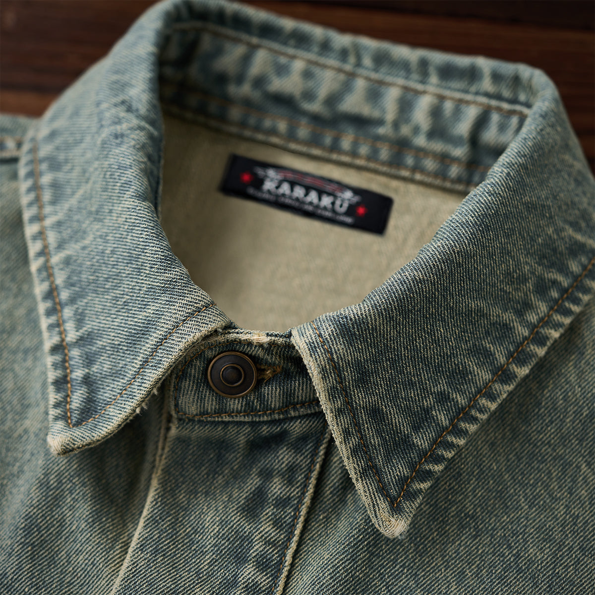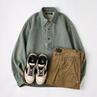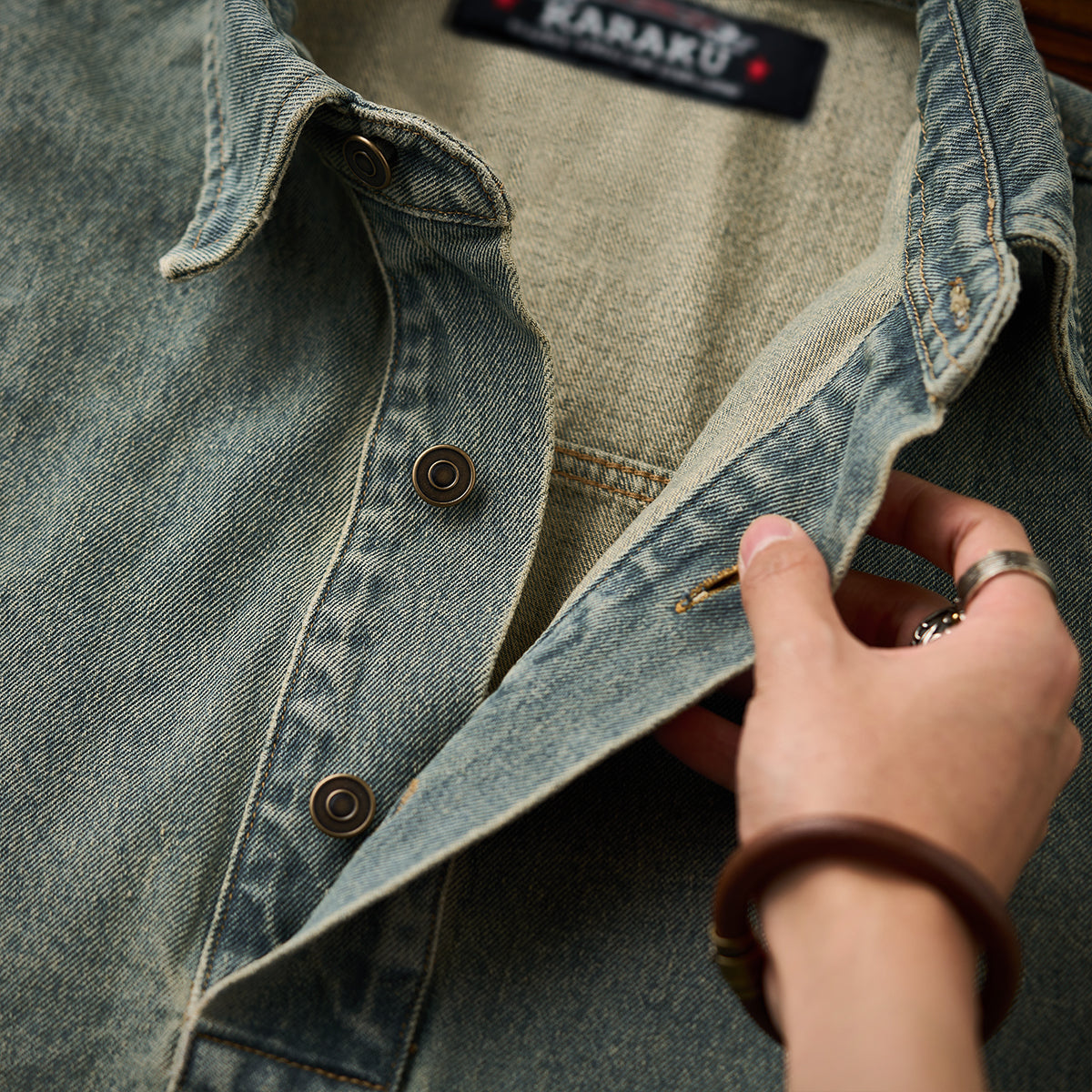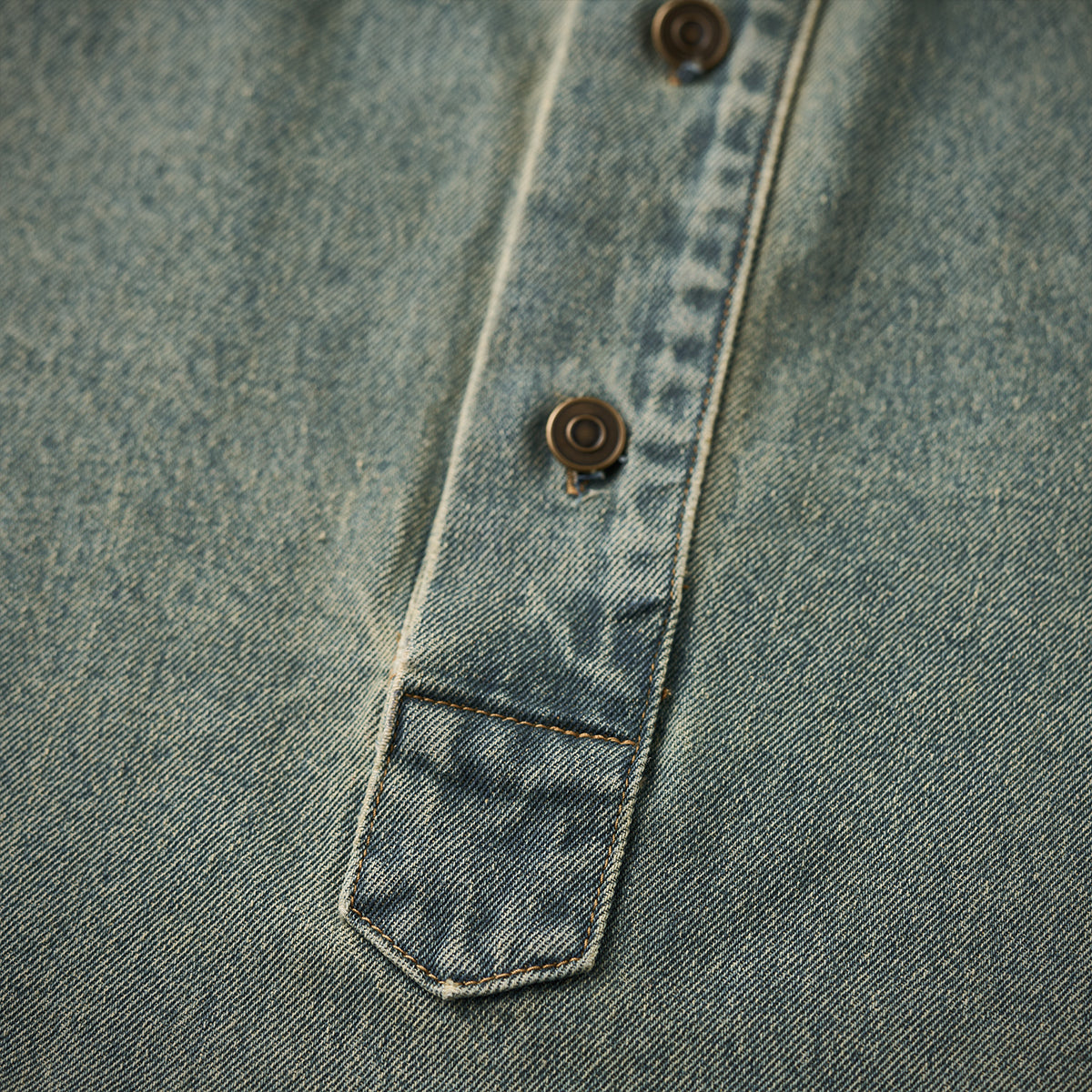 유즈드 & 워시드 가공 하프 버튼 긴팔 데님 셔츠