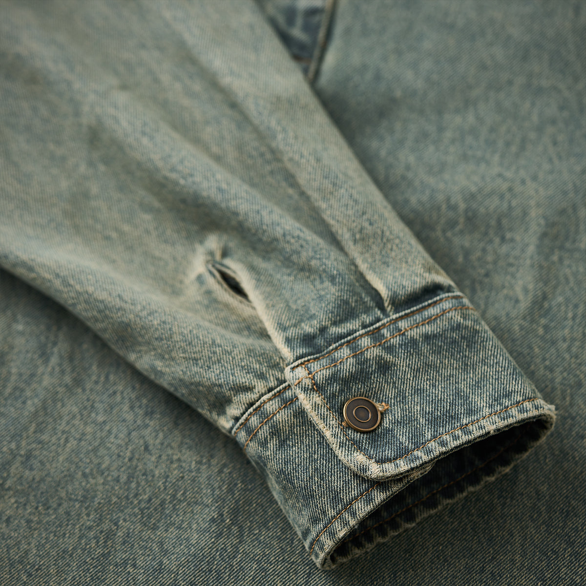 튼튼한 데님 소재로 캐주얼한 느낌을 주며, 빈티지 워시드 가공으로 유즈드 감성을 살려 독특한 멋을 더했습니다.