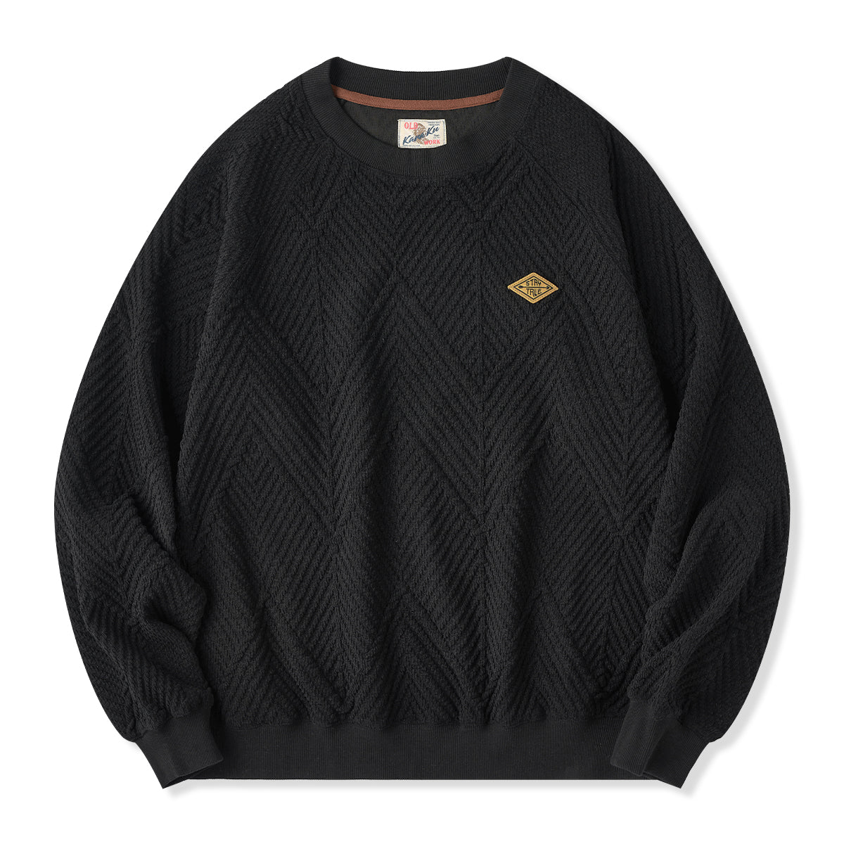 【사전예약】「STAY TRUE」자수 와펜 지그재그 자카드 니트 스웨트