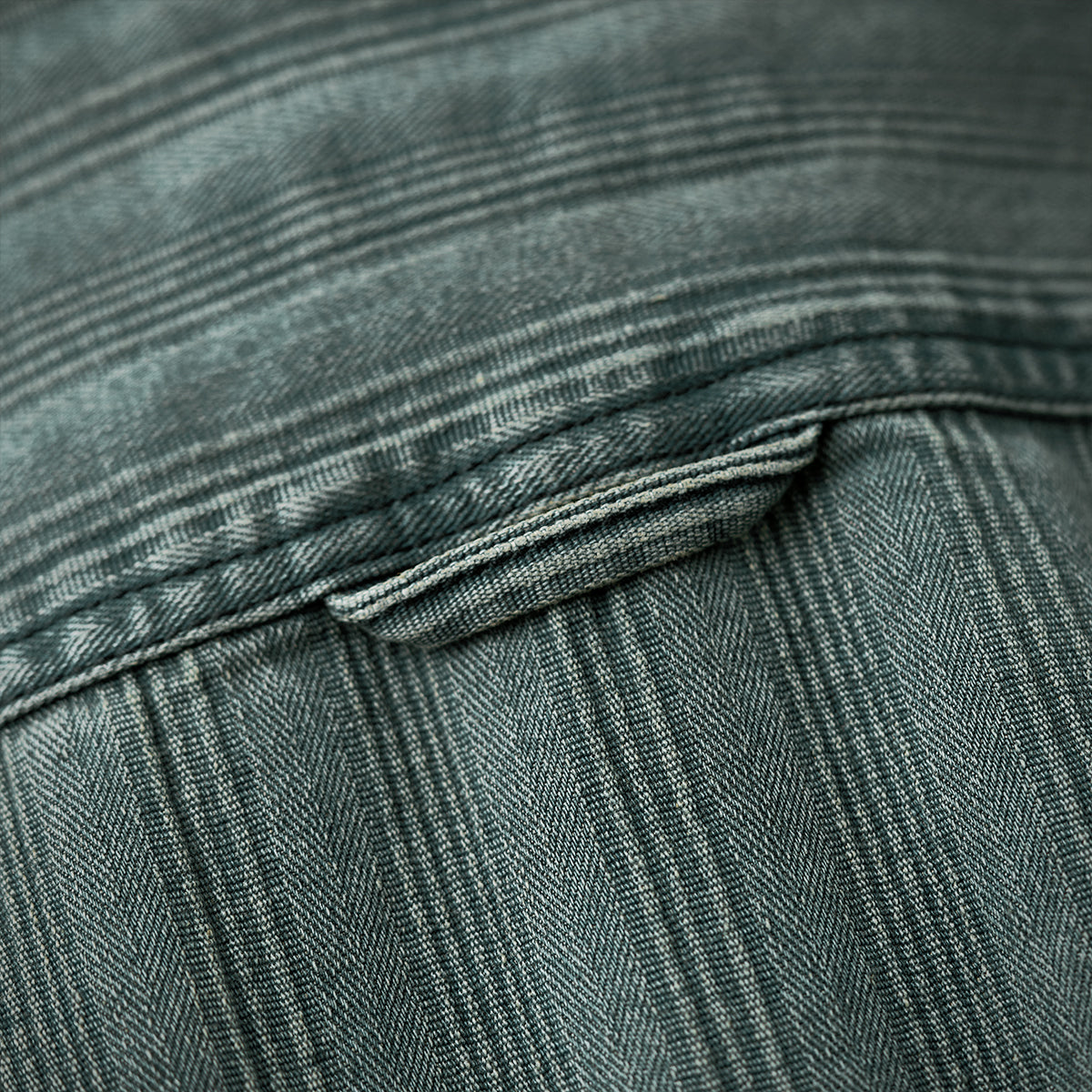 스트라이프 무늬가 레트로 데님 원단에 직조되어, 빈티지한 멋과 고급스러움을 동시에 느낄 수 있습니다.