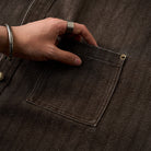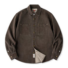 헤링본 자카드 패턴에 코팅 가공을 더해 고급스러운 질감과 실용성을 갖춘 디자인입니다. 워크 셔츠 무드의 포켓과 메탈 버튼으로 깔끔한 실루엣을 완성했습니다.