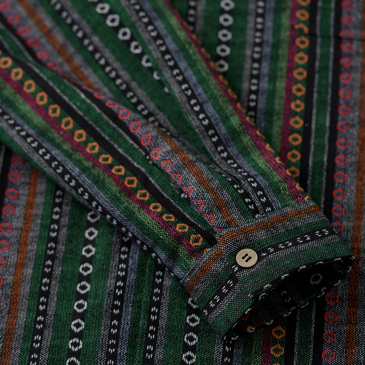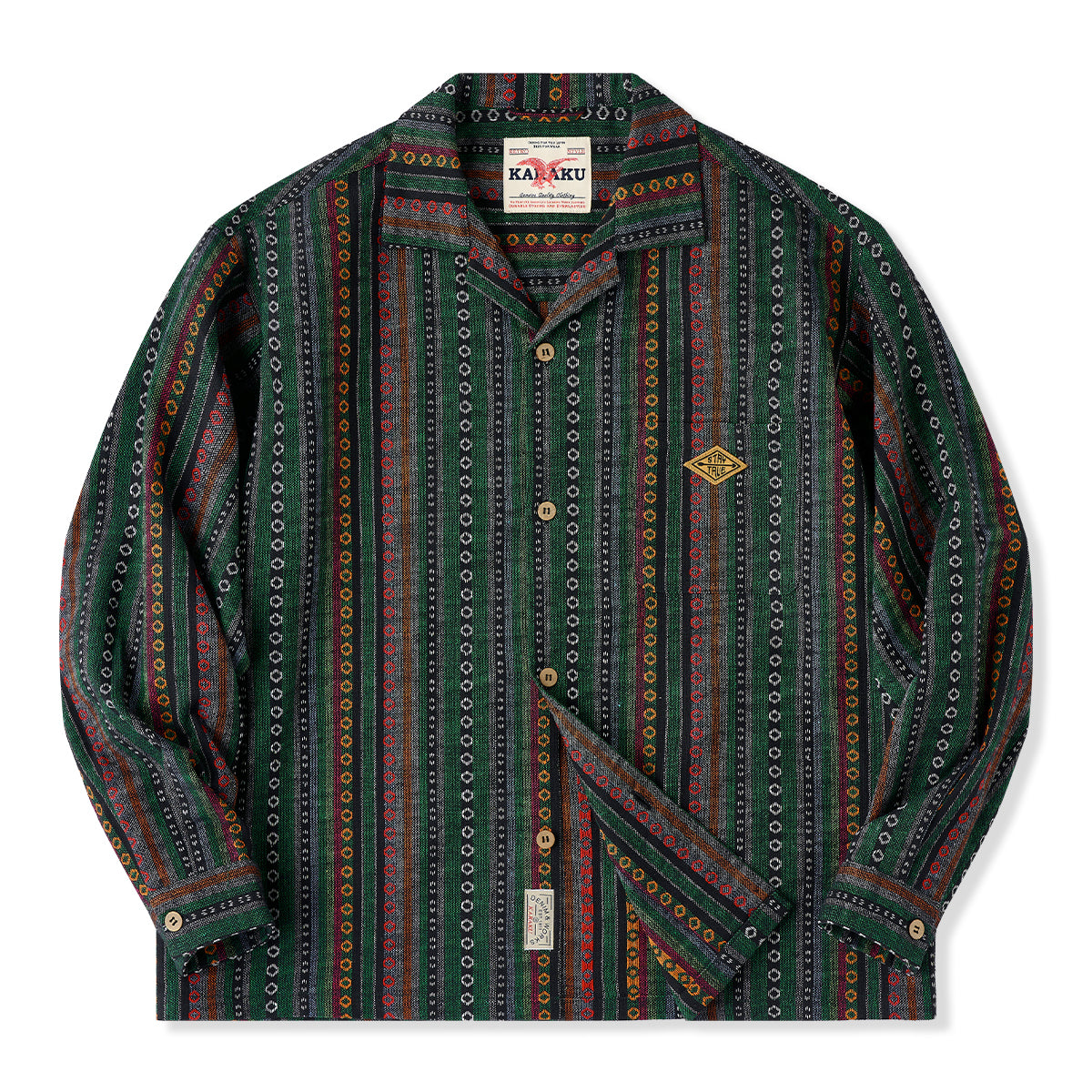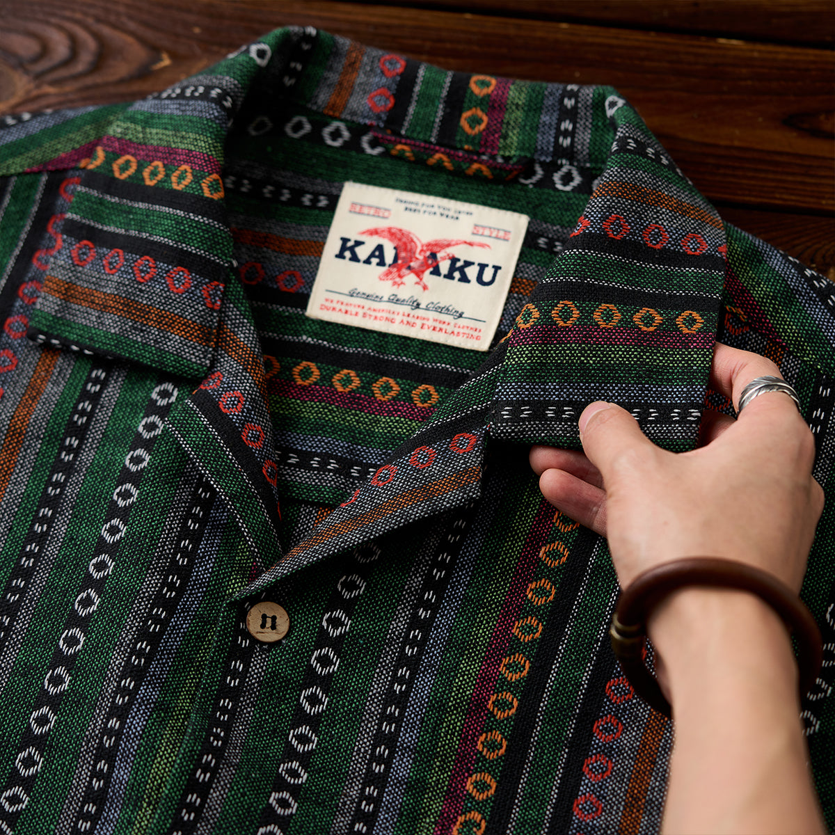 【사전예약】에스닉 자카드 짜임 컬러풀 스트라이프 무늬 오픈 칼라 셔츠