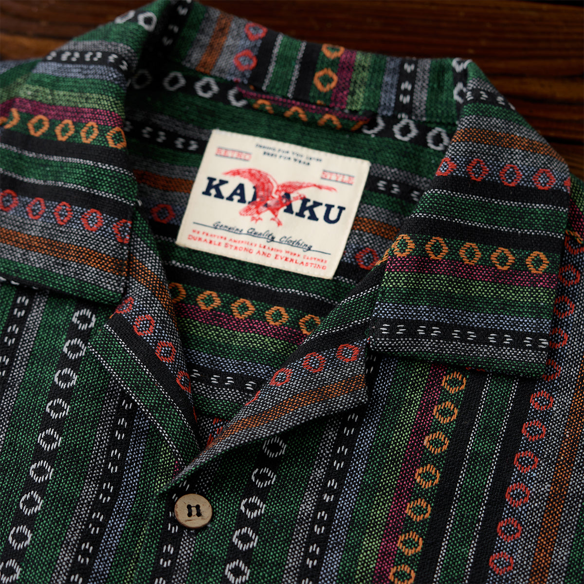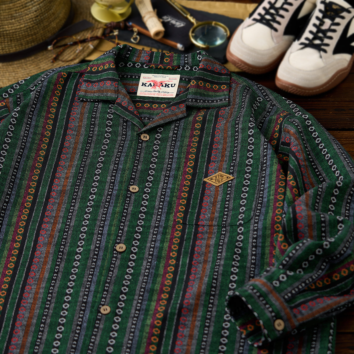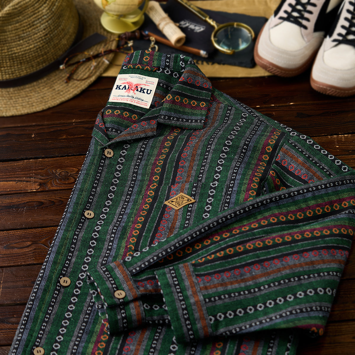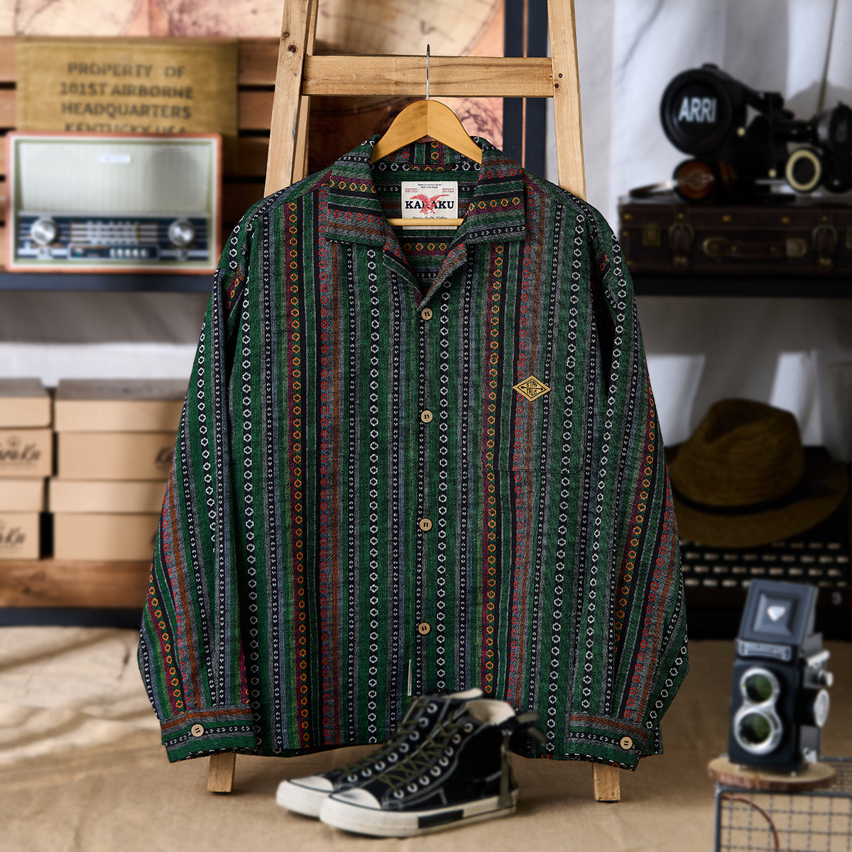 【사전예약】에스닉 자카드 짜임 컬러풀 스트라이프 무늬 오픈 칼라 셔츠