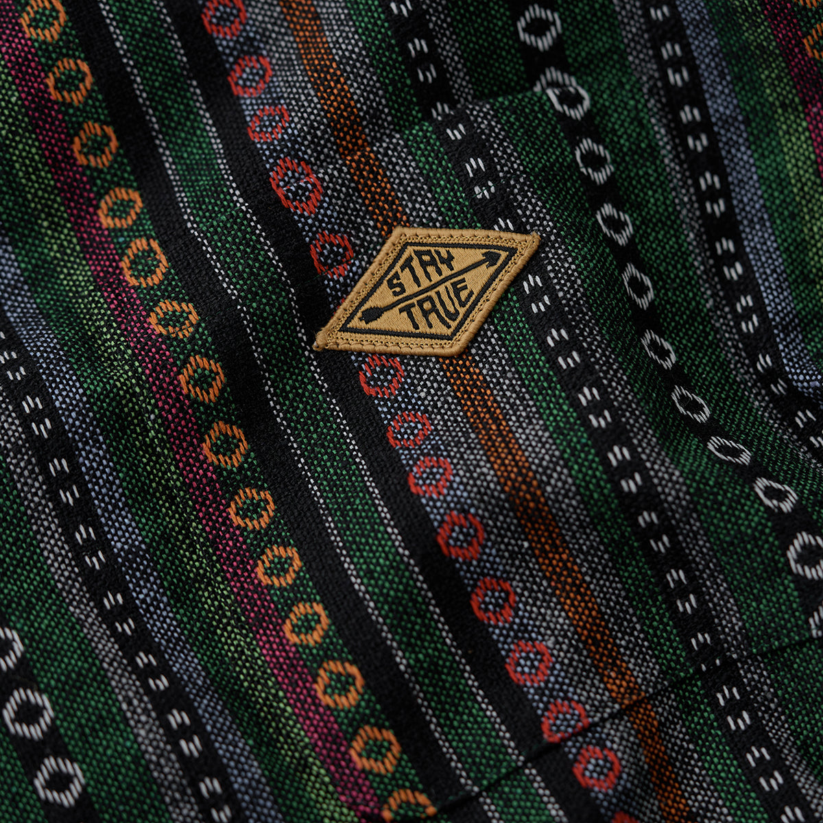 에스닉풍 자카드 직조로 컬러풀한 스트라이프 무늬를 표현해 입체감과 깊이를 살렸으며, 오픈 칼라로 편안하면서도 자연스러운 스타일을 연출합니다.