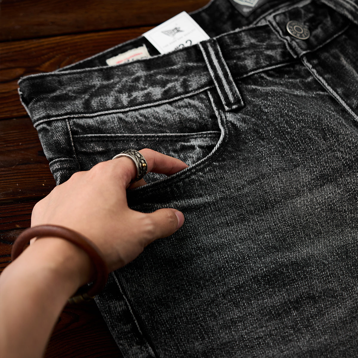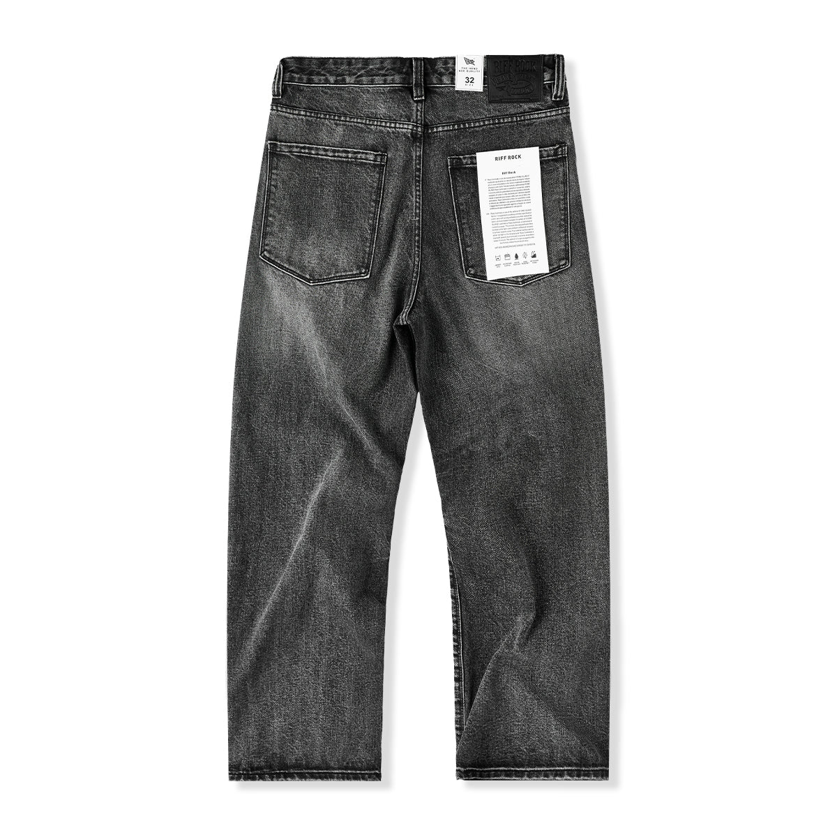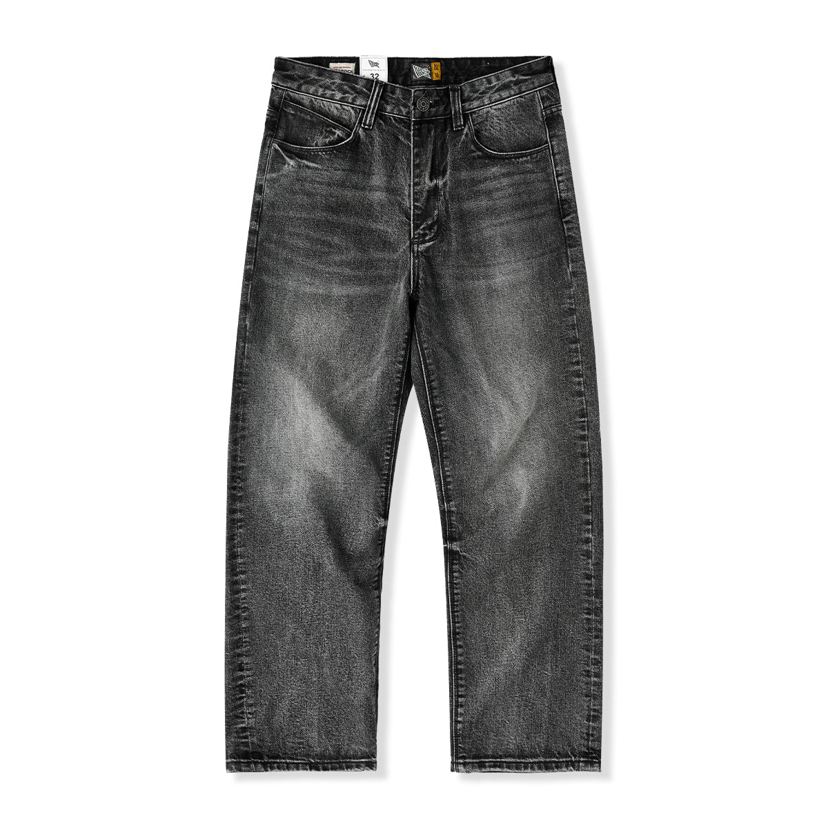 블랙 데님의 화이트 페이드와 워시 가공으로 빈티지한 멋과 편안한 착용감을 살린 일자핏 팬츠로, 모노톤이나 캐주얼룩과 매치하기 좋습니다.