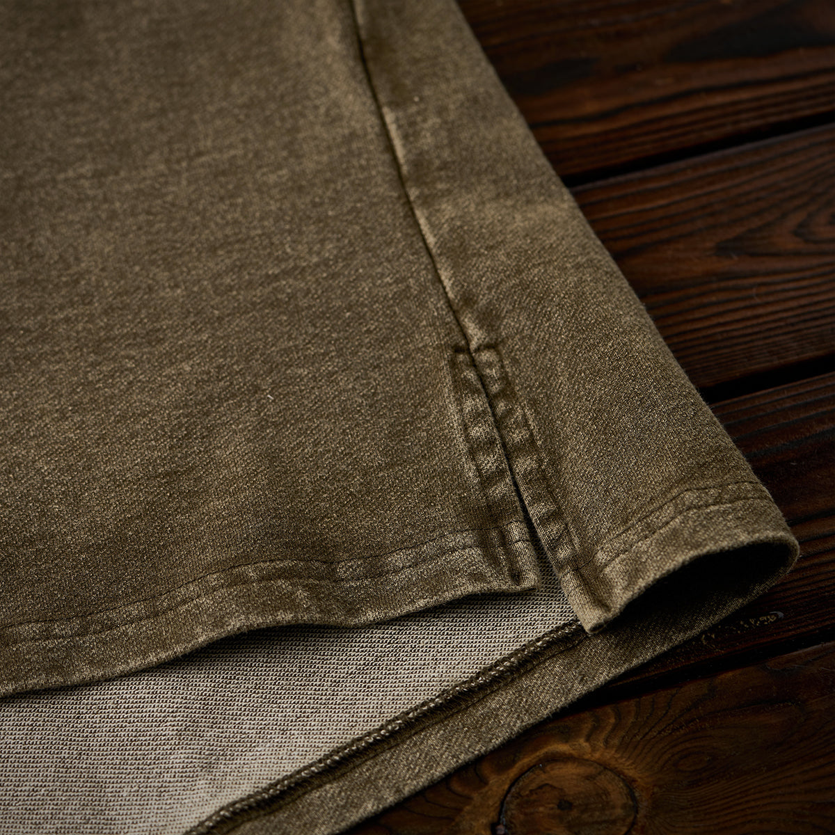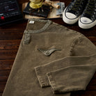 면을 메인으로 사용하여 부드럽고 통기성이 좋으며, 쾌적하게 착용 가능합니다. 전체적으로 워싱된 듯한 질감이 빈티지한 분위기를 연출합니다.