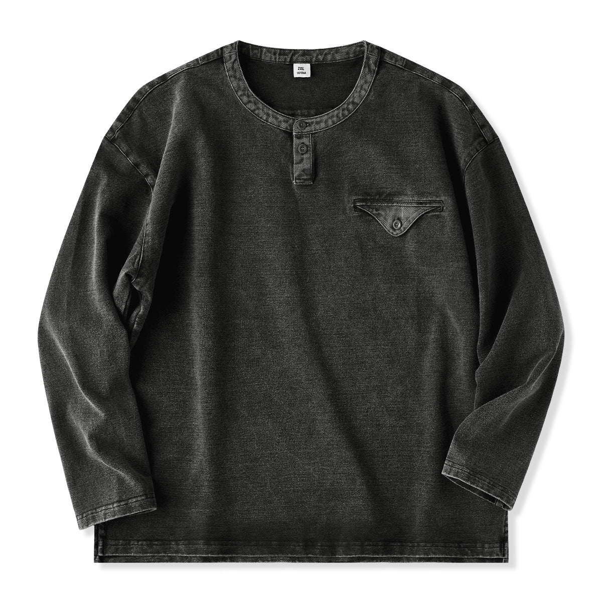 2컬러 페이크 포켓 헨리넥 헤비웨이트 롱 T