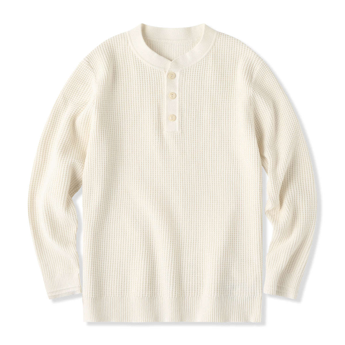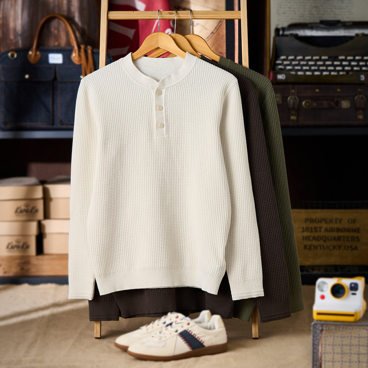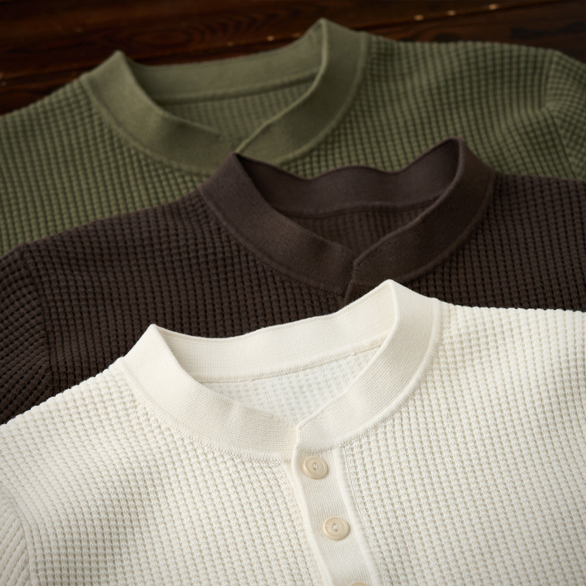 3컬러 헤비웨이트 와플 니트 헨리넥 긴팔 티셔츠