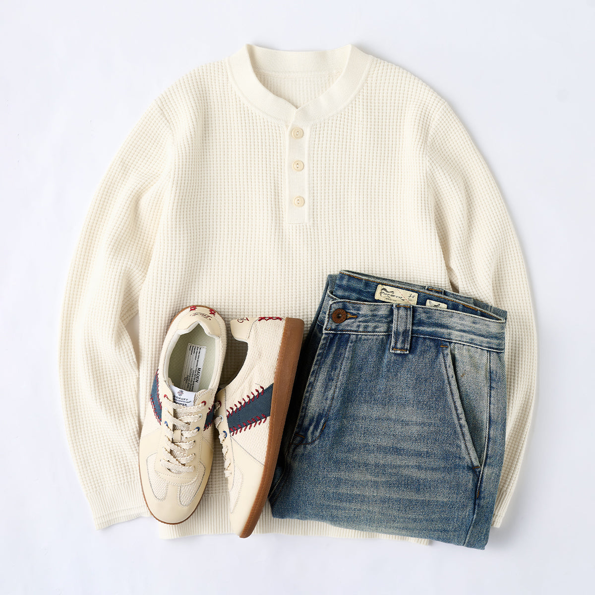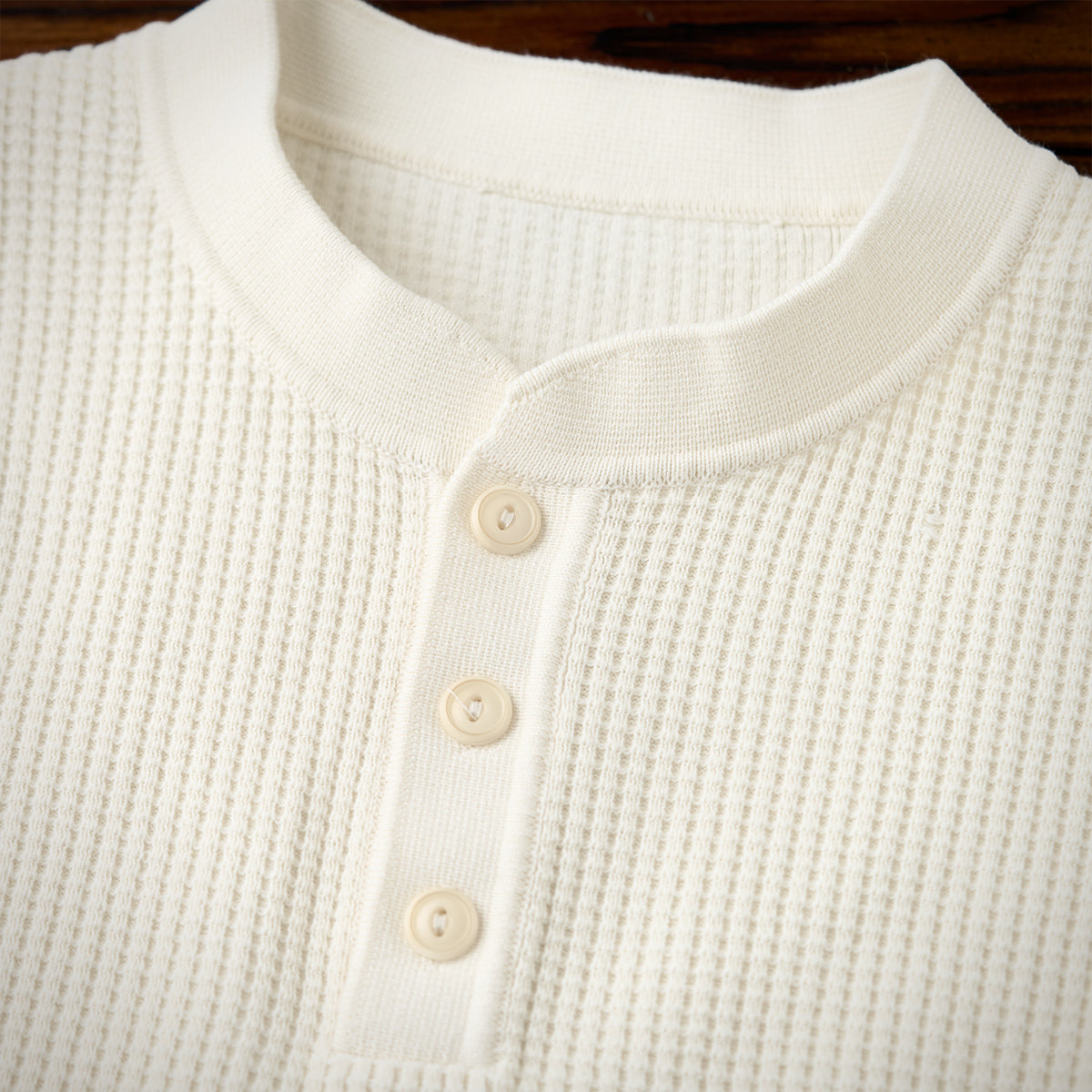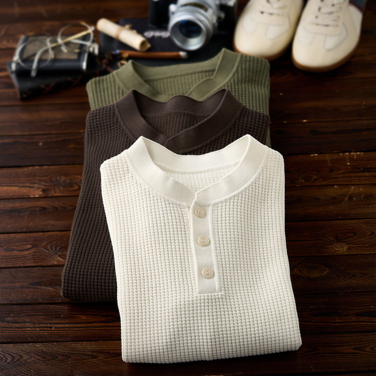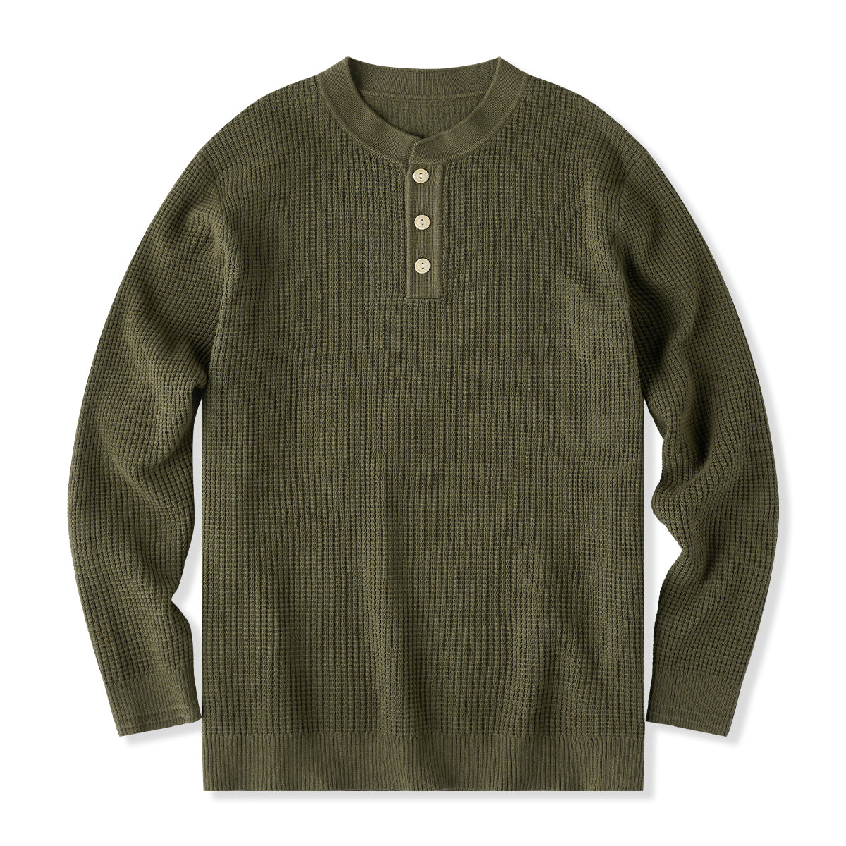 3컬러 헤비웨이트 와플 니트 헨리넥 긴팔 티셔츠