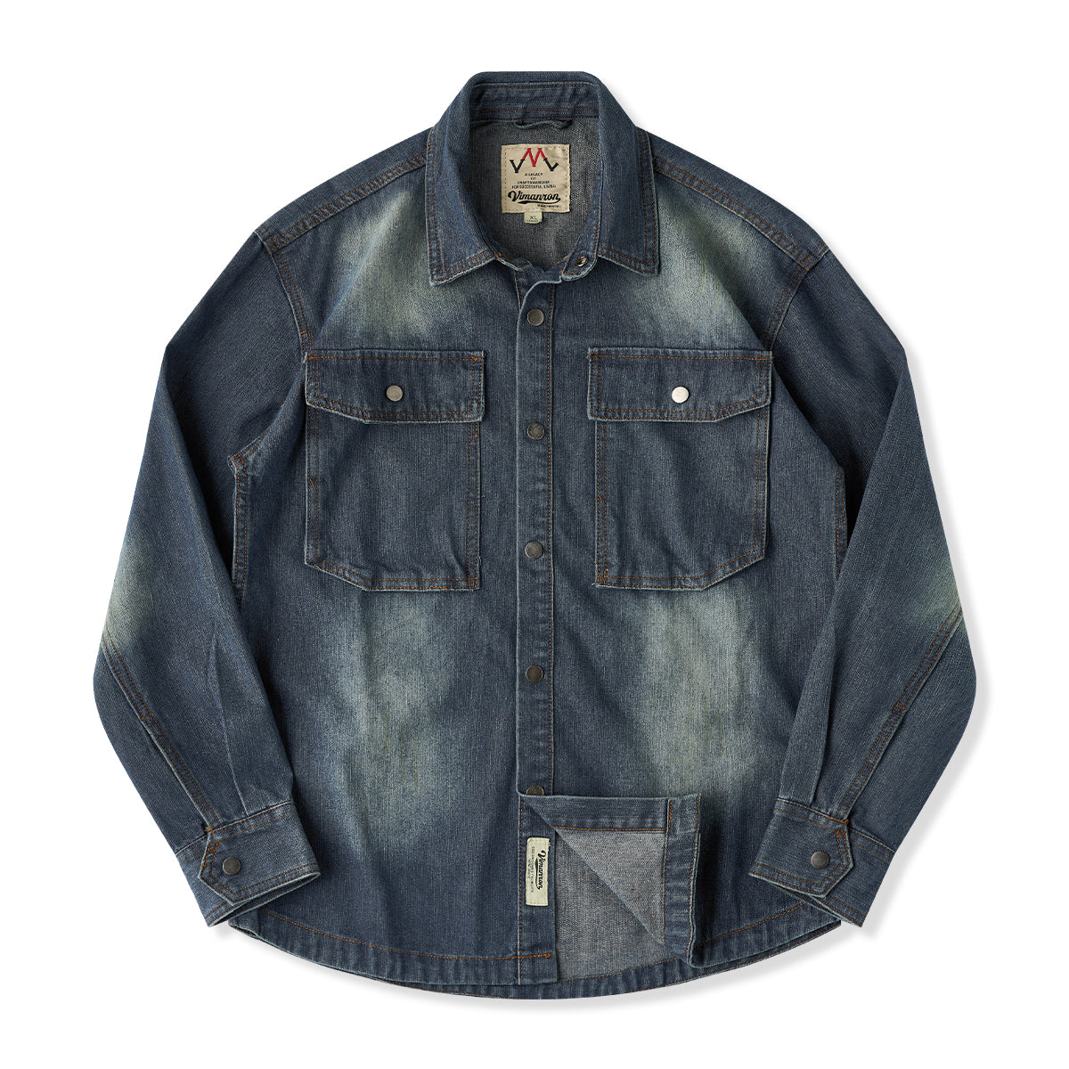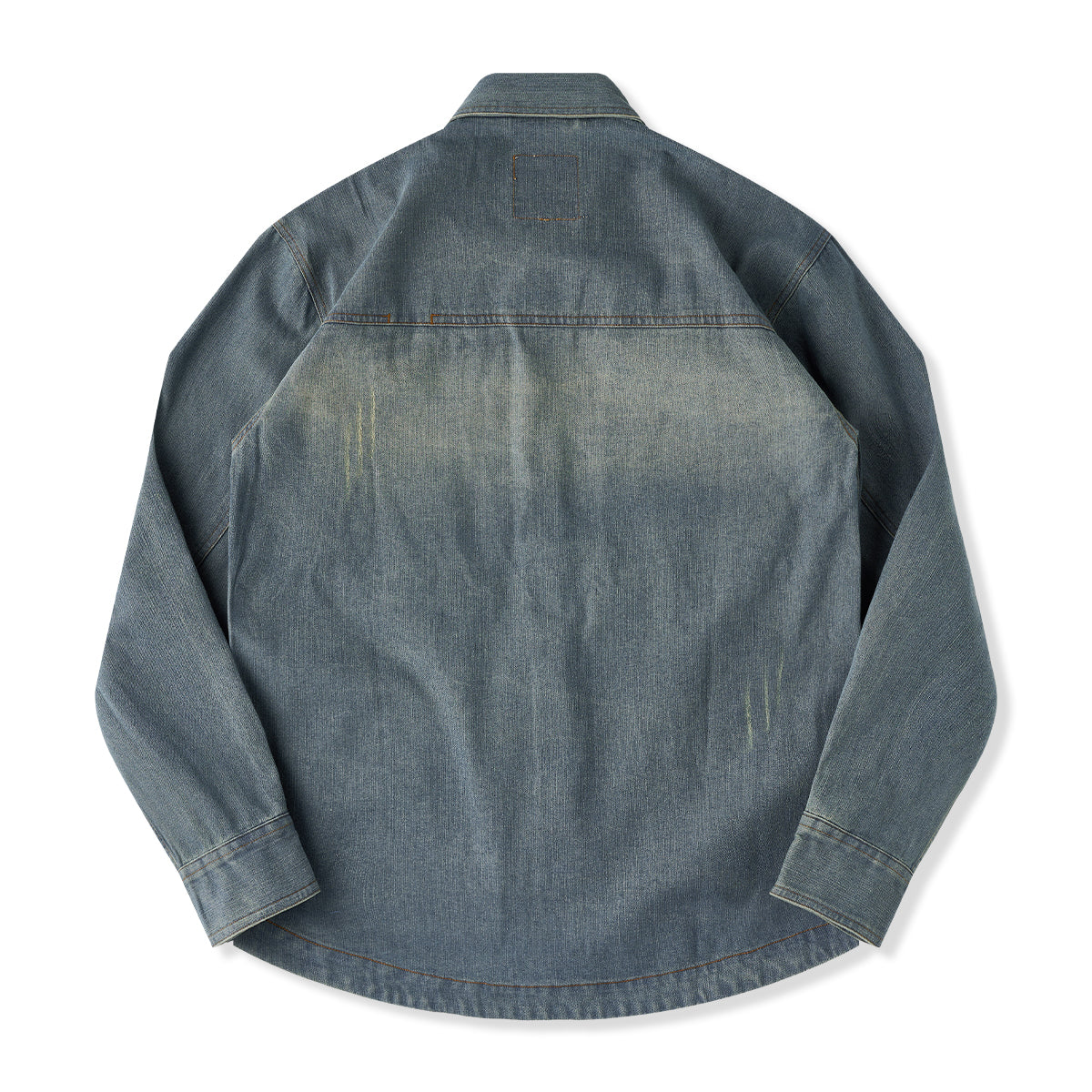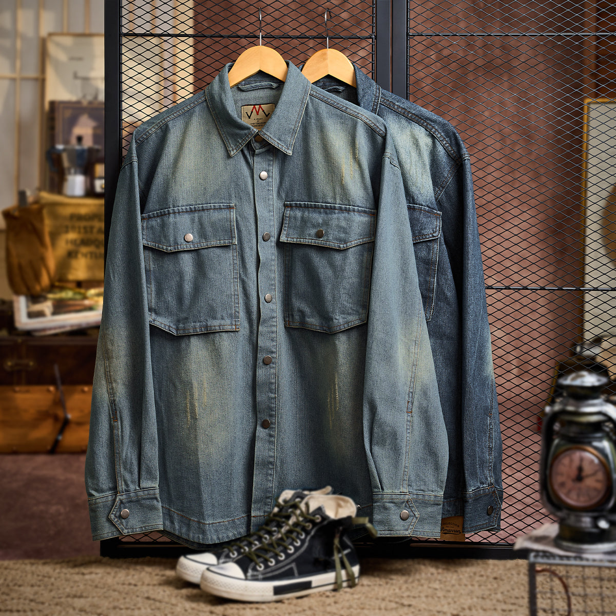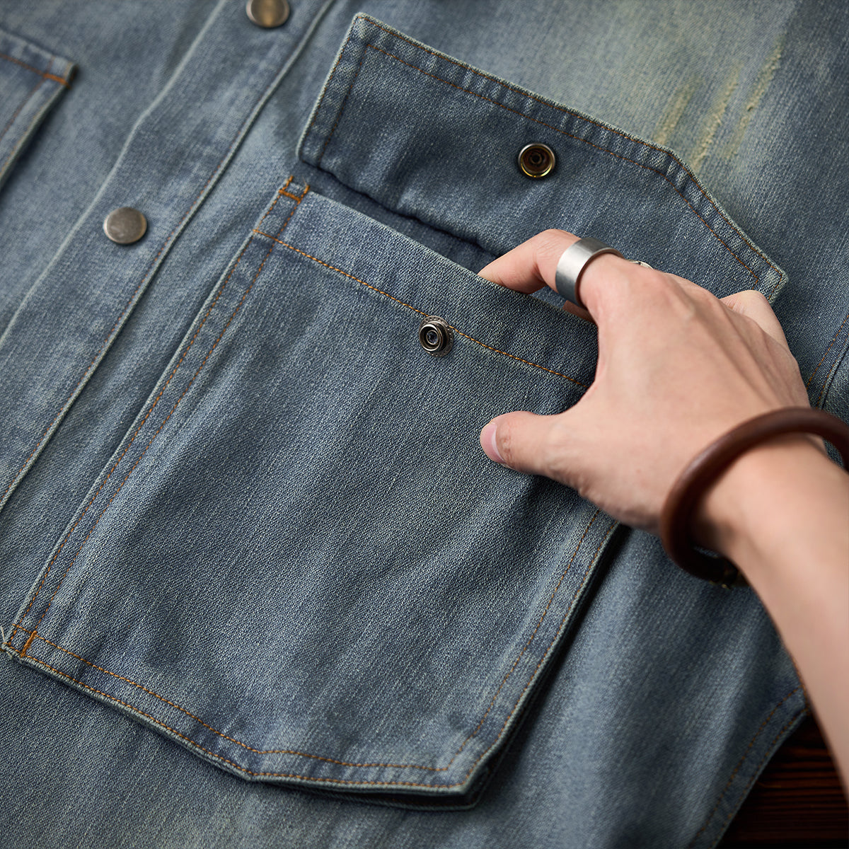 대용량 포켓 스트톤 워시 가공 데님 워크 셔츠