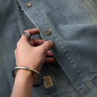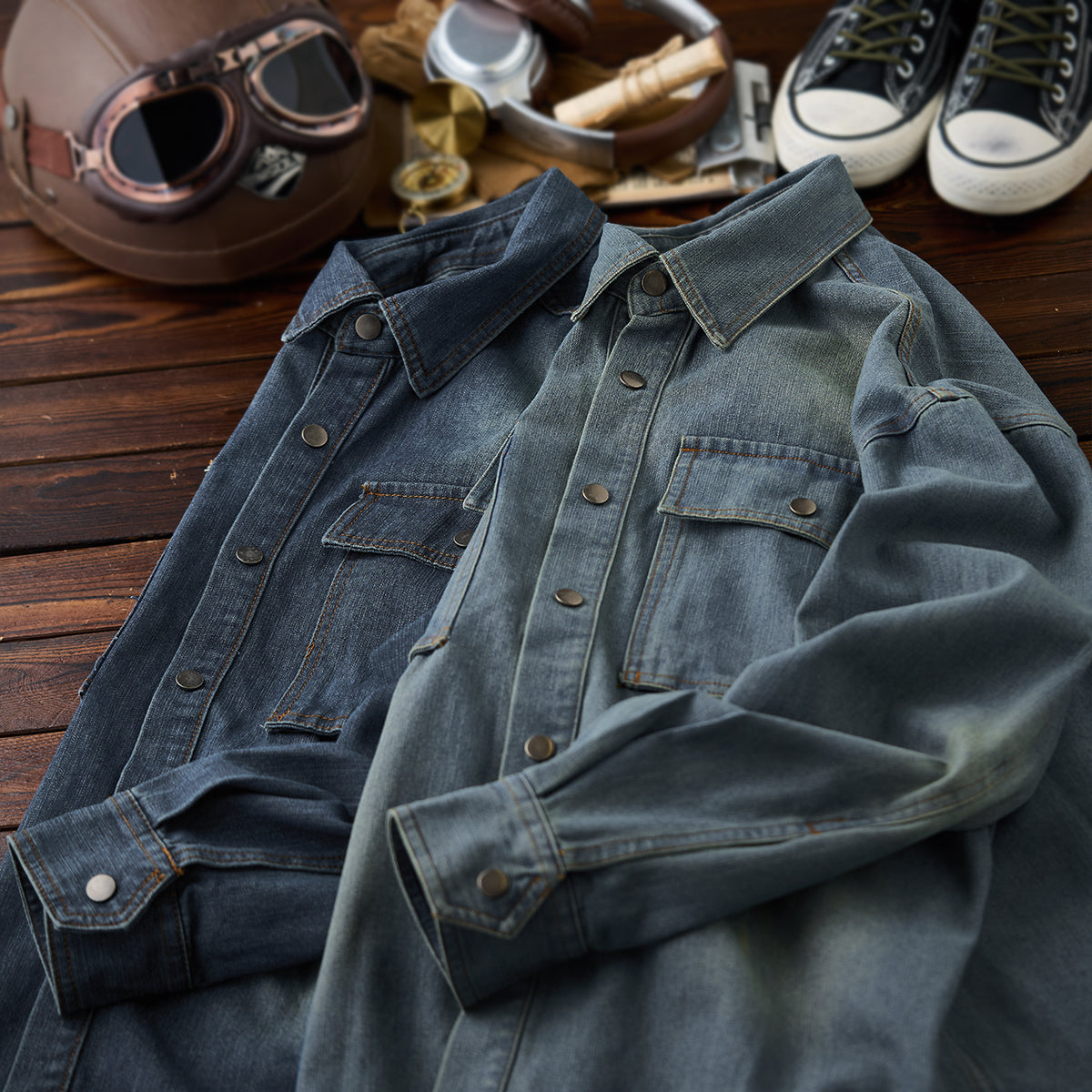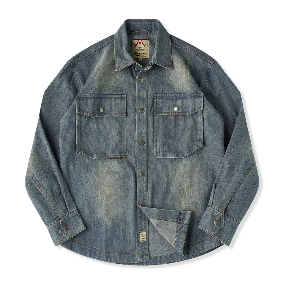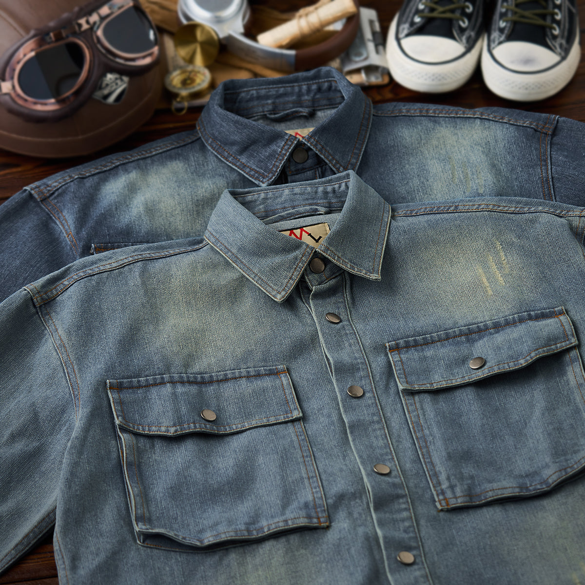 대용량 포켓 스트톤 워시 가공 데님 워크 셔츠