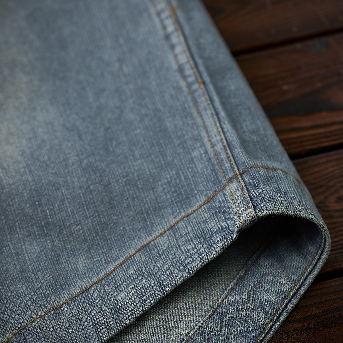탄탄하고 내구성 좋은 데님 원단으로 제작되어 편안하면서도 견고한 착용감을 제공합니다.