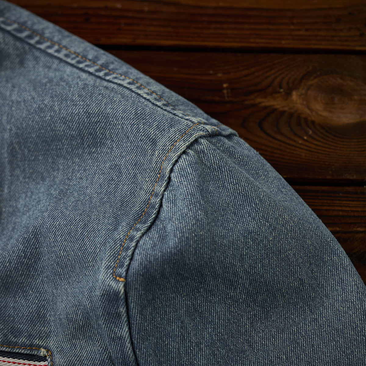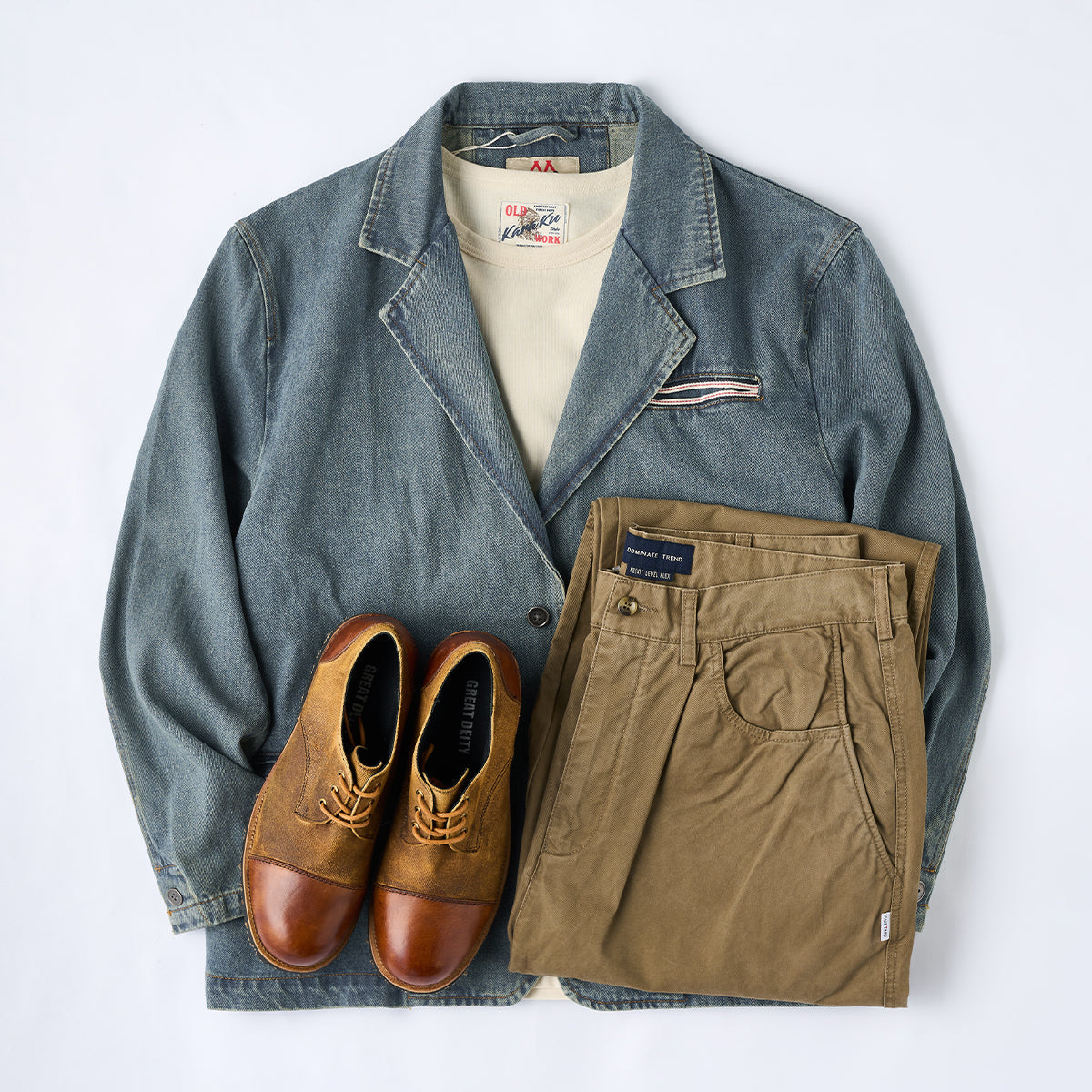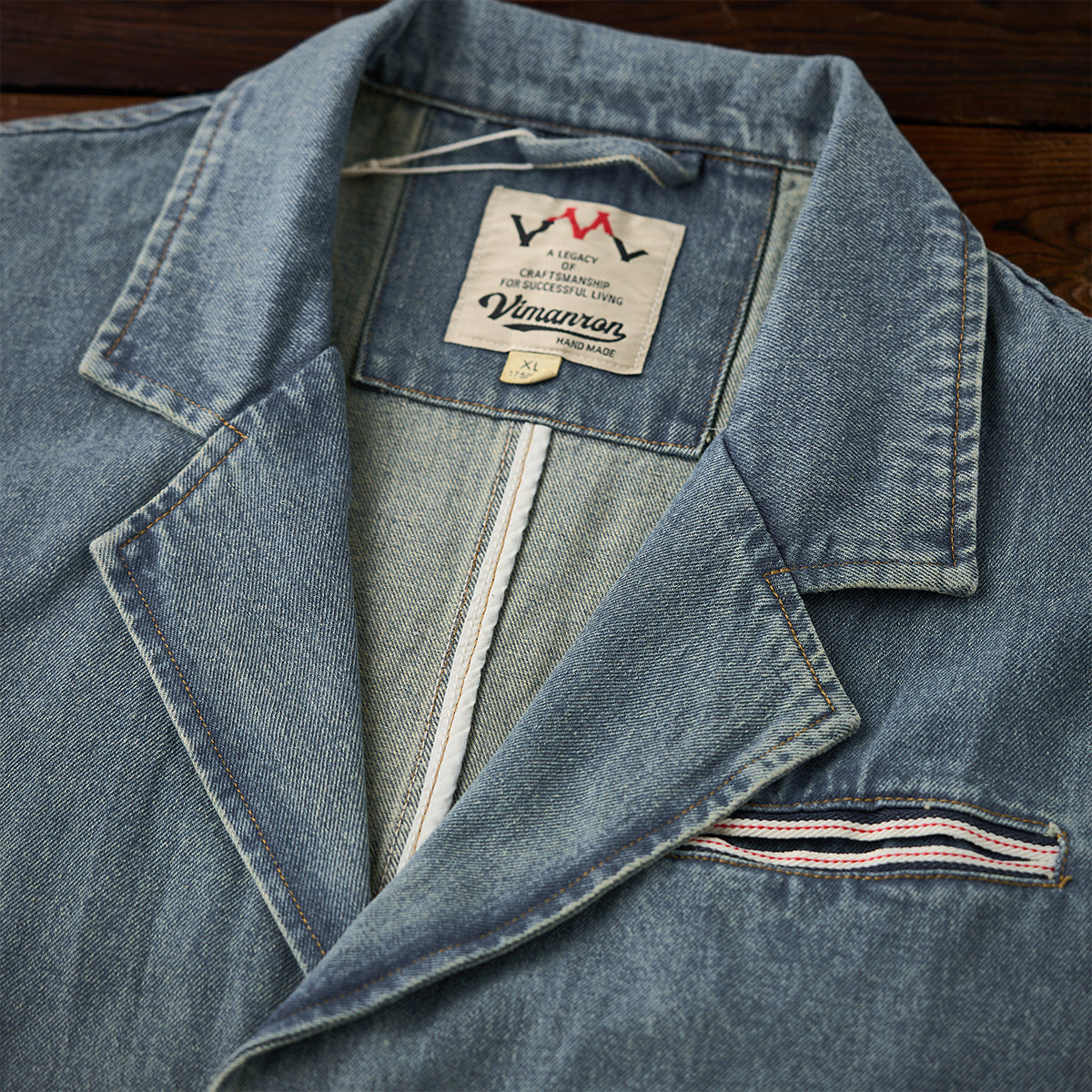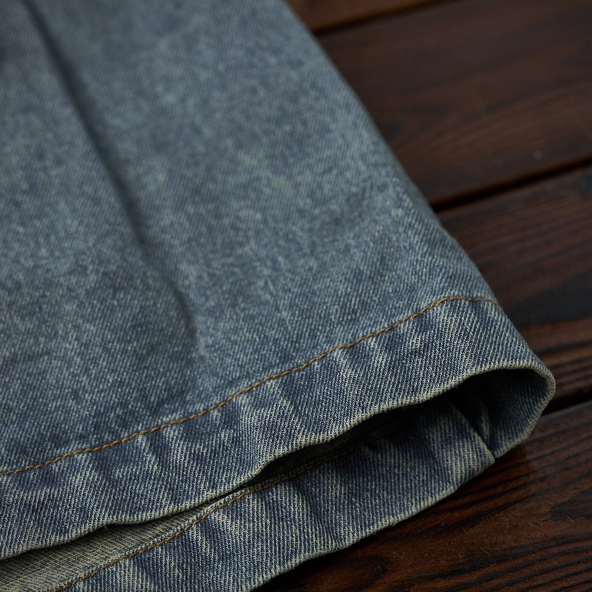 앞면 버튼과 포켓 디테일, 포켓 스티치로 실용성과 디자인을 모두 갖춘 데님 테일러드 자켓입니다.