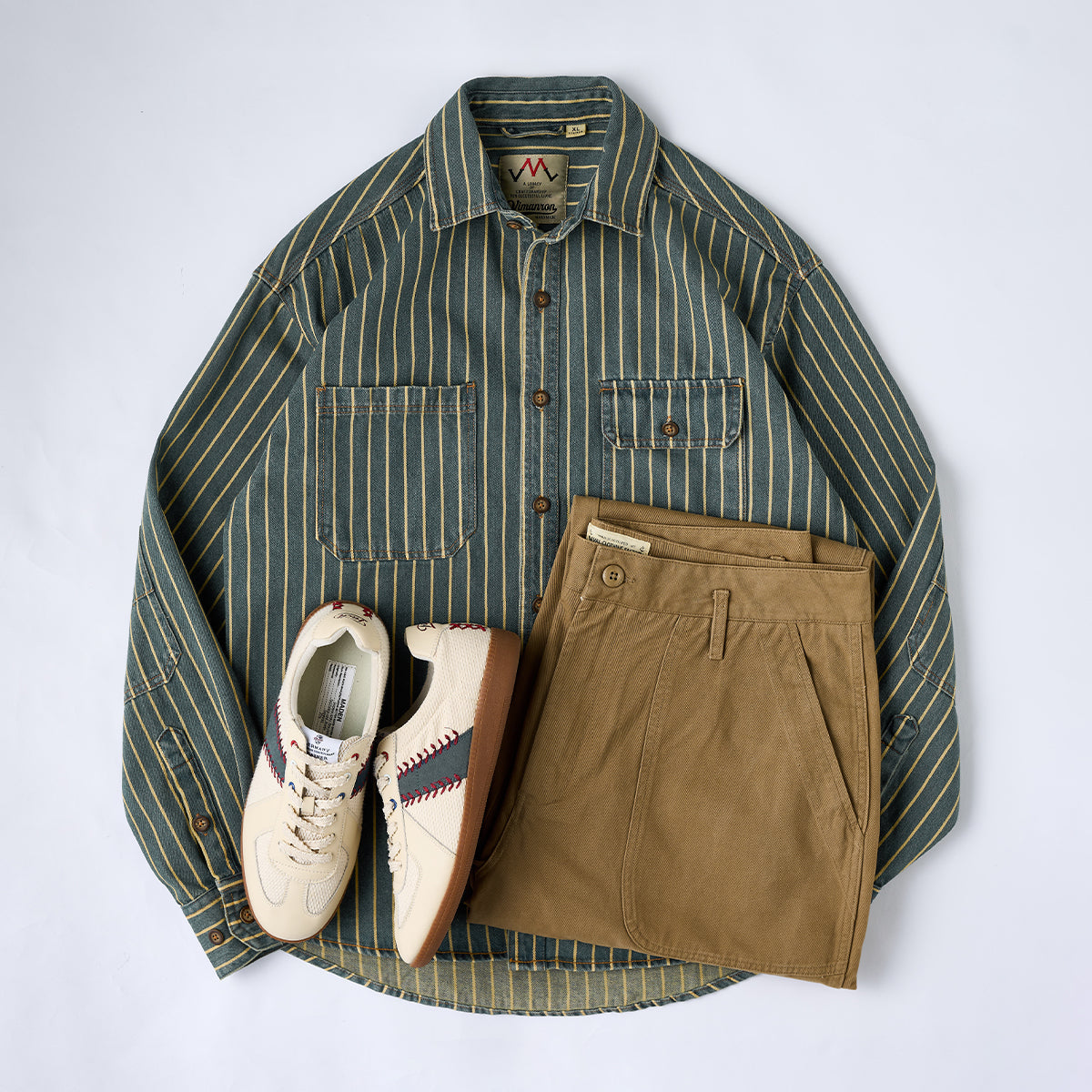 워크웨어 특유의 멋에 위트 있는 디테일을 더한 데님 워크 셔츠로, 스트라이프 패턴과 좌우 비대칭 포켓이 개성을 살린 KARAKU 스타일의 데일리 아이템입니다.