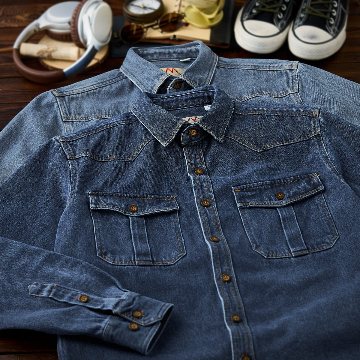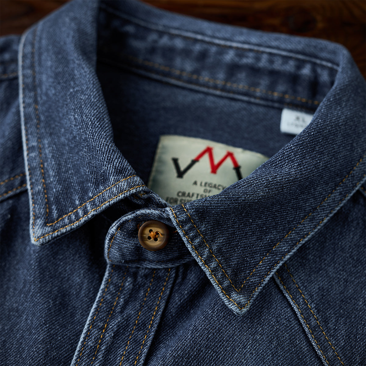 웨스턴 요크 프리티드 포켓 데님 워크 셔츠