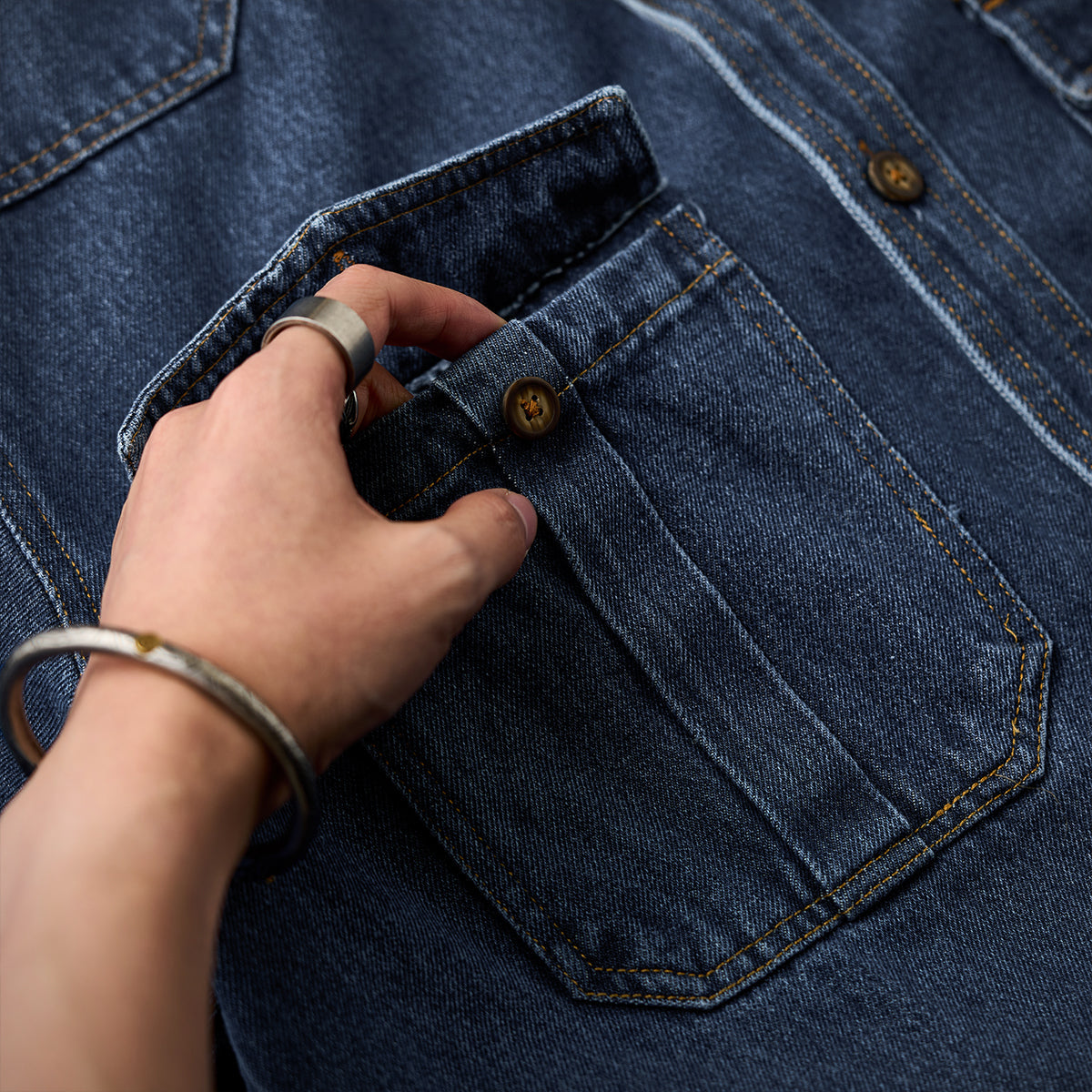 워크웨어 스타일을 현대적으로 재해석한 데님 셔츠로, 적당한 두께의 데님 소재를 사용해 단독은 물론 레이어드 이너로도 활용 가능합니다. 착용할수록 멋이 더해지는 데일리 아이템입니다.
