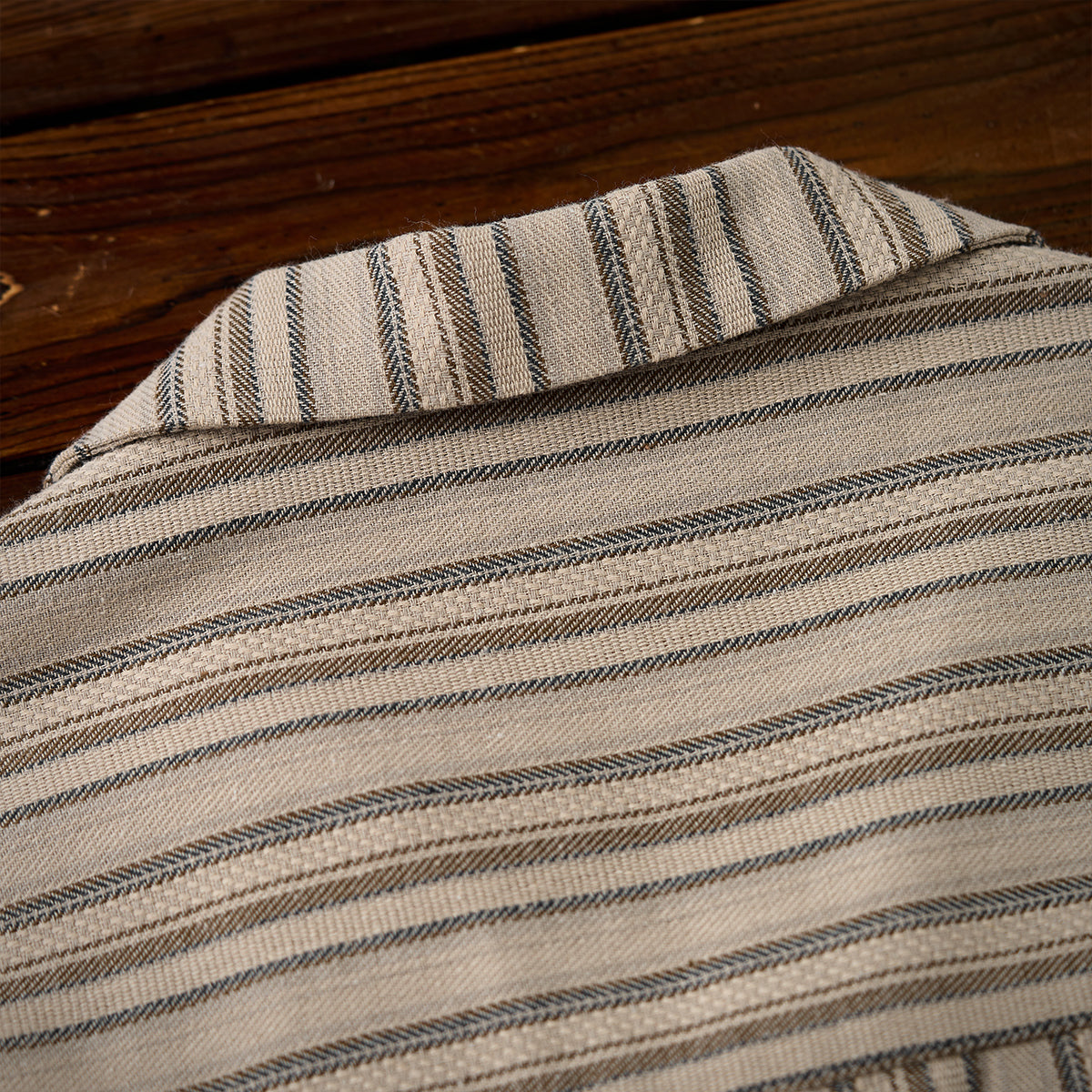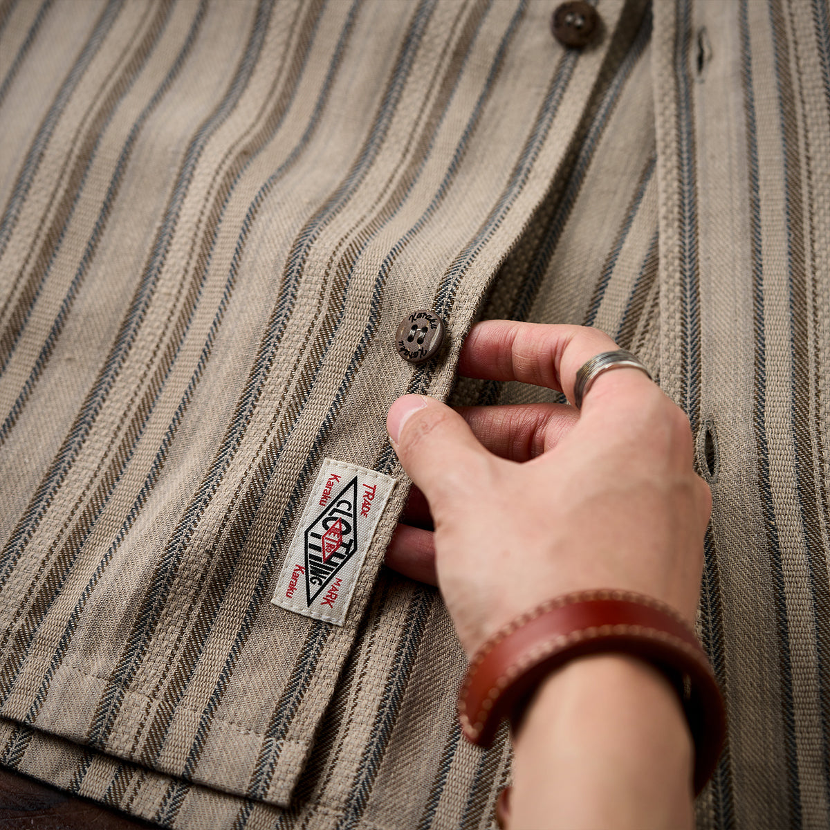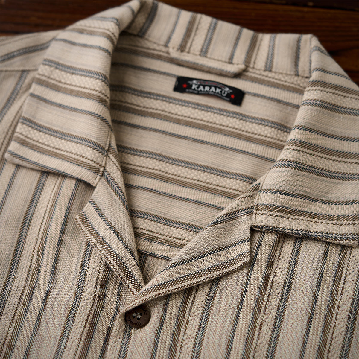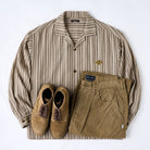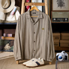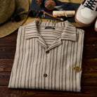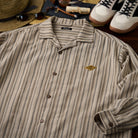 【사전예약】「STAY TRUE」자수 와펜 · 리넨 혼방 멀티 스트라이프 큐바 칼라 셔츠