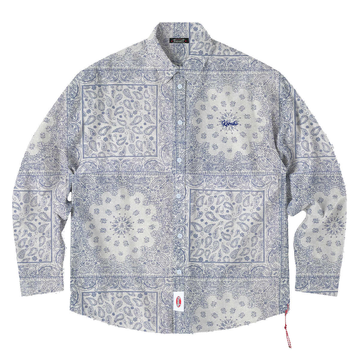 전면에 페이즐리 반다나 무늬를 더해 눈길을 끄는 긴팔 셔츠로 완성했으며, 빈티지한 패턴과 캐주얼한 실루엣이 조화를 이루어 단독으로 입어도 멋스럽습니다.
