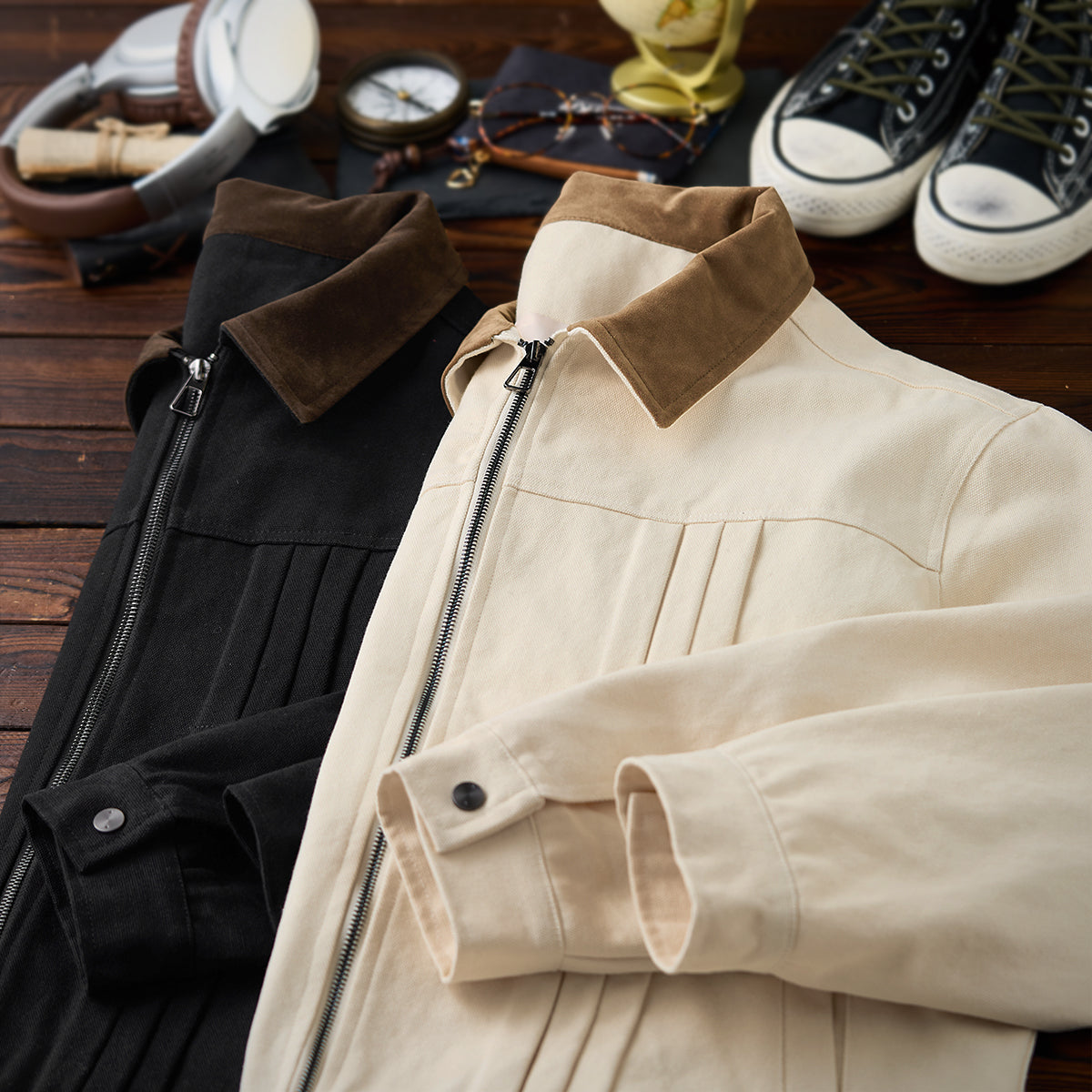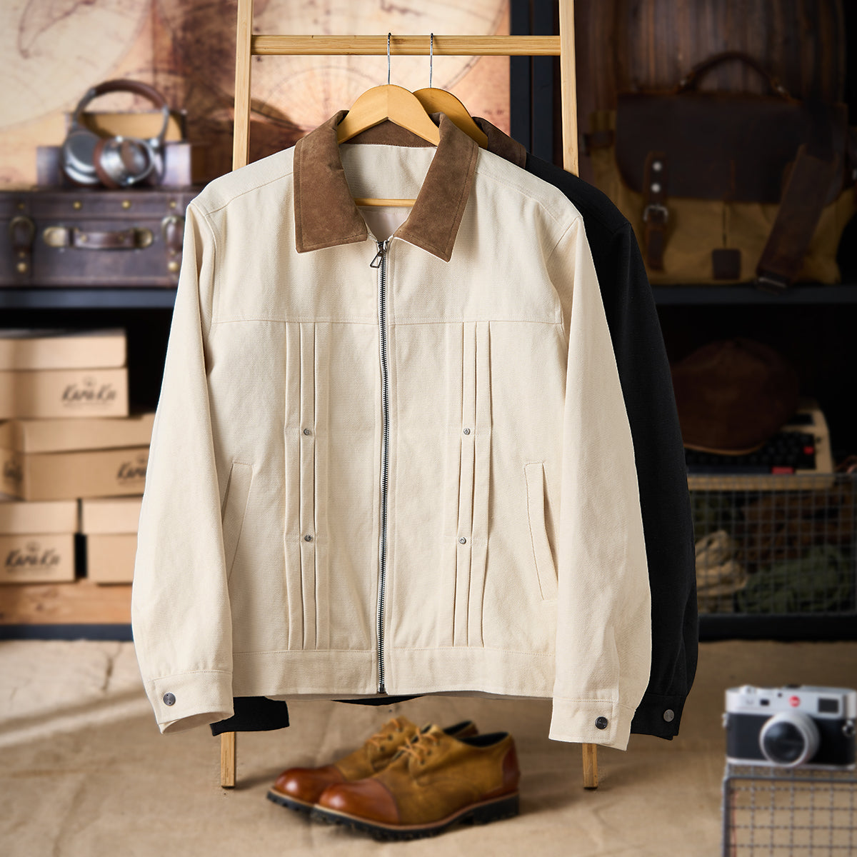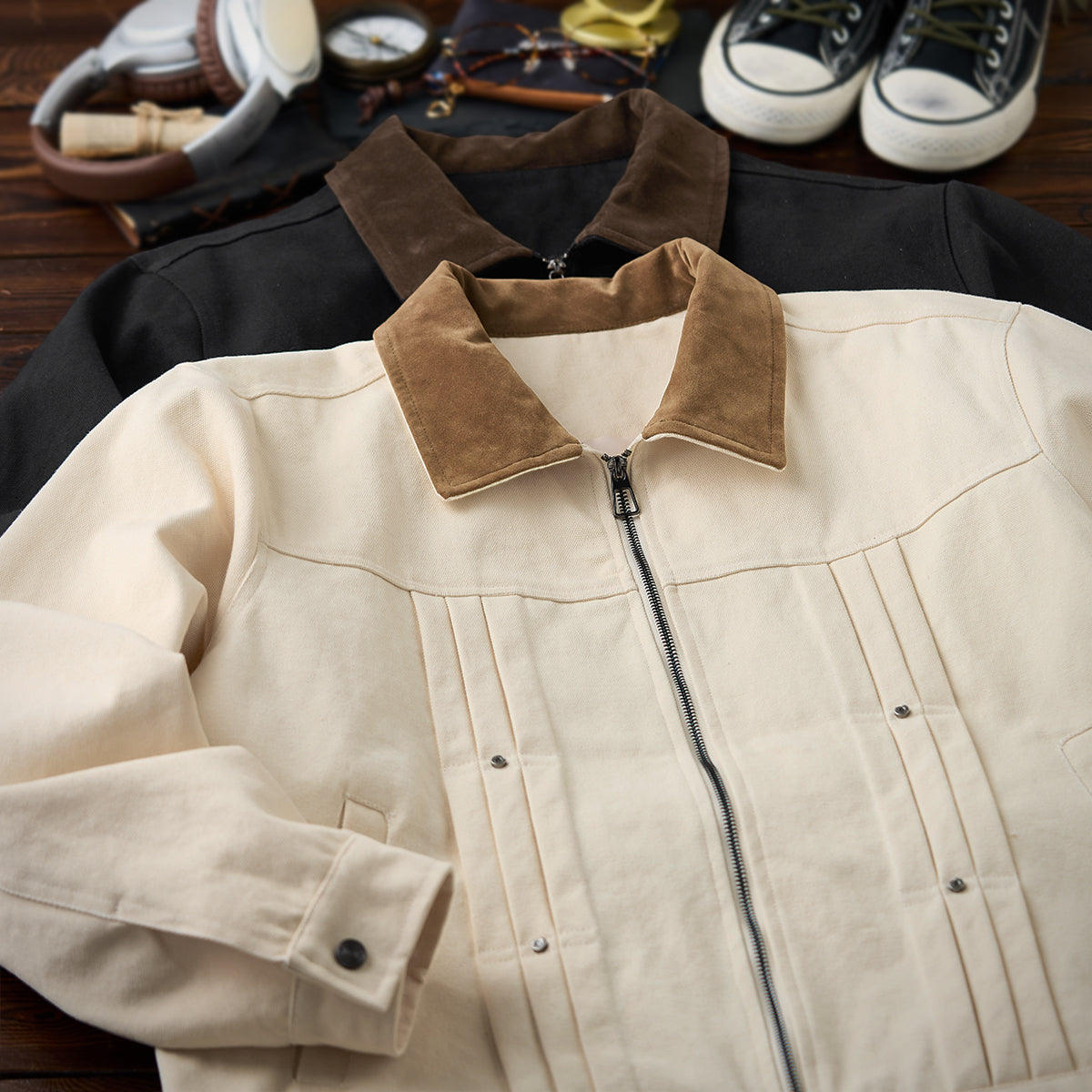 코듀로이 칼라 배색 핀턱 가공 헤비웨이트 캔버스 자켓