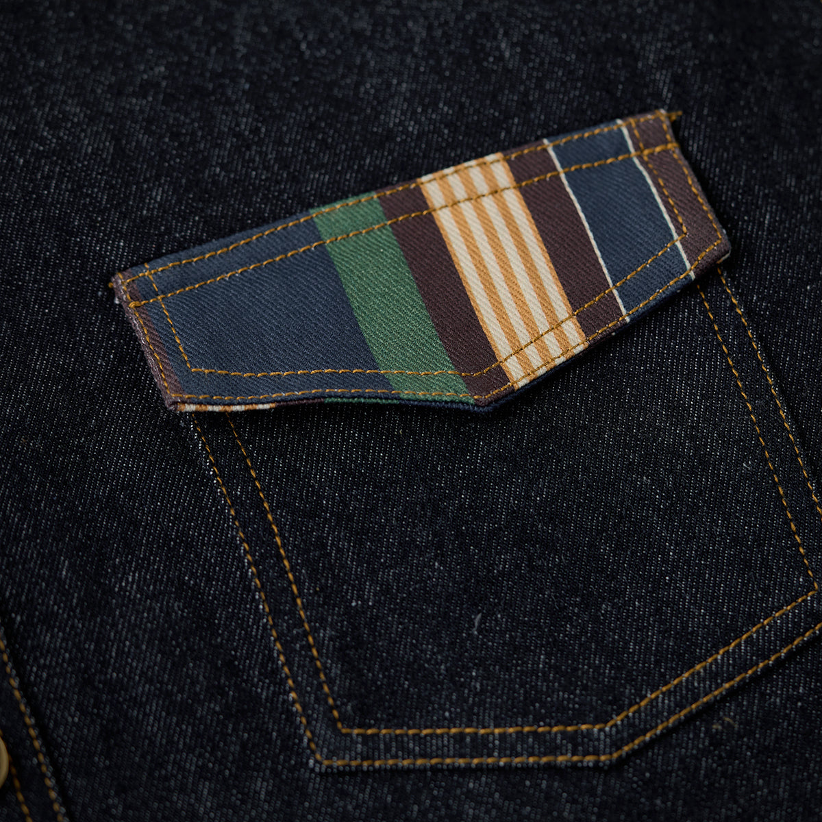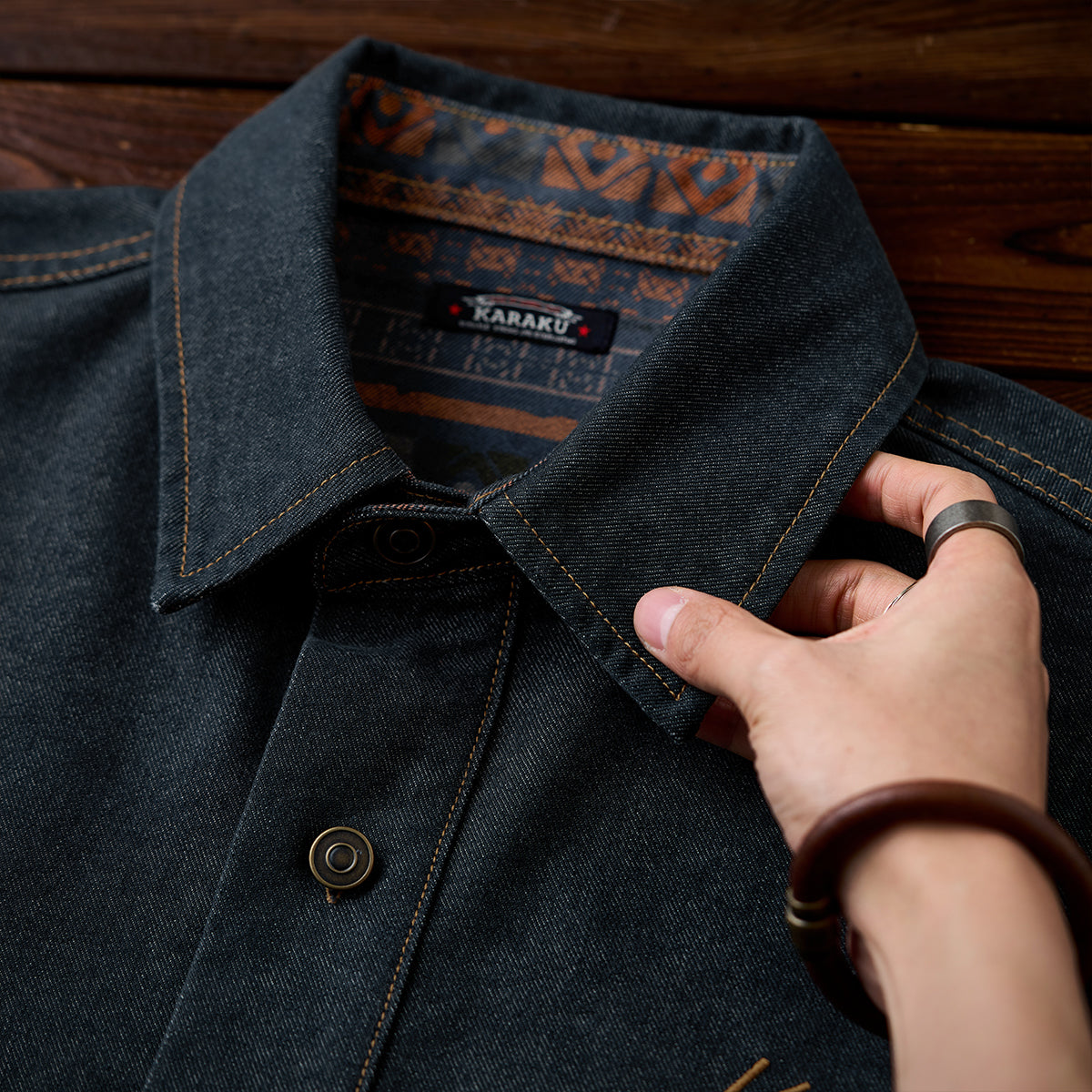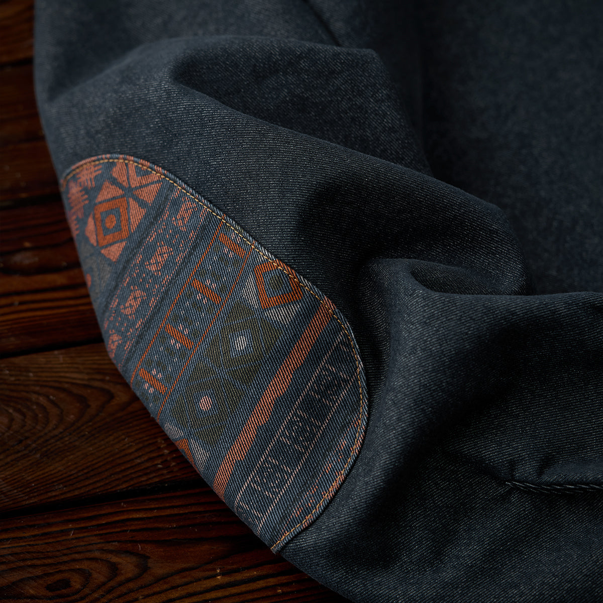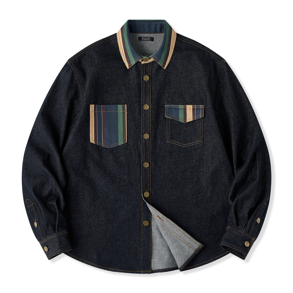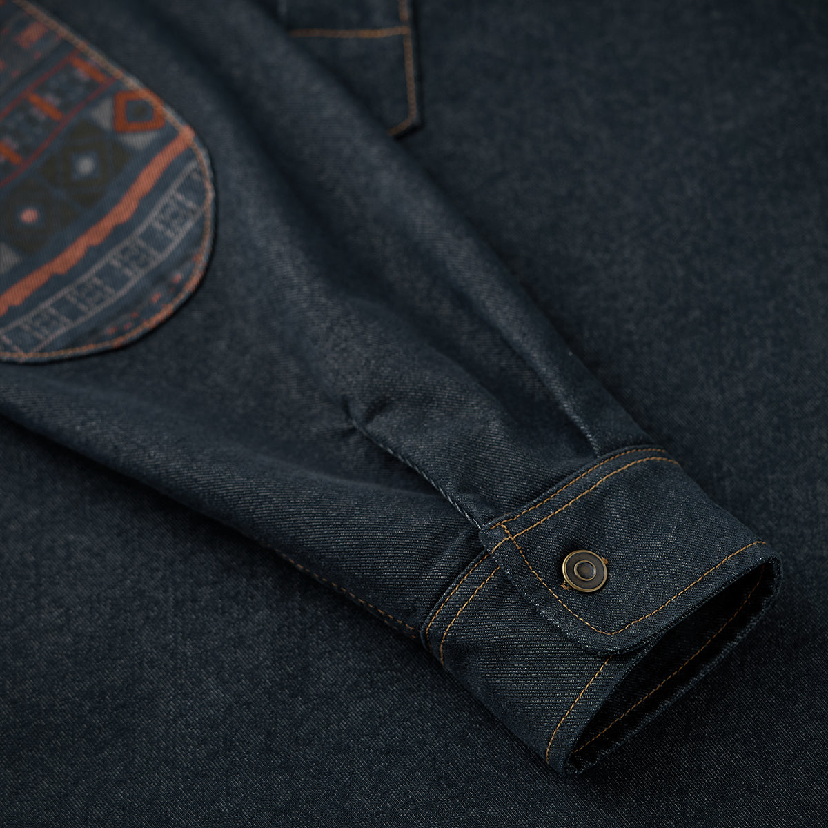 코듀로이 칼라 & 에스닉 패턴 안감 프린트 데님 워크 셔츠