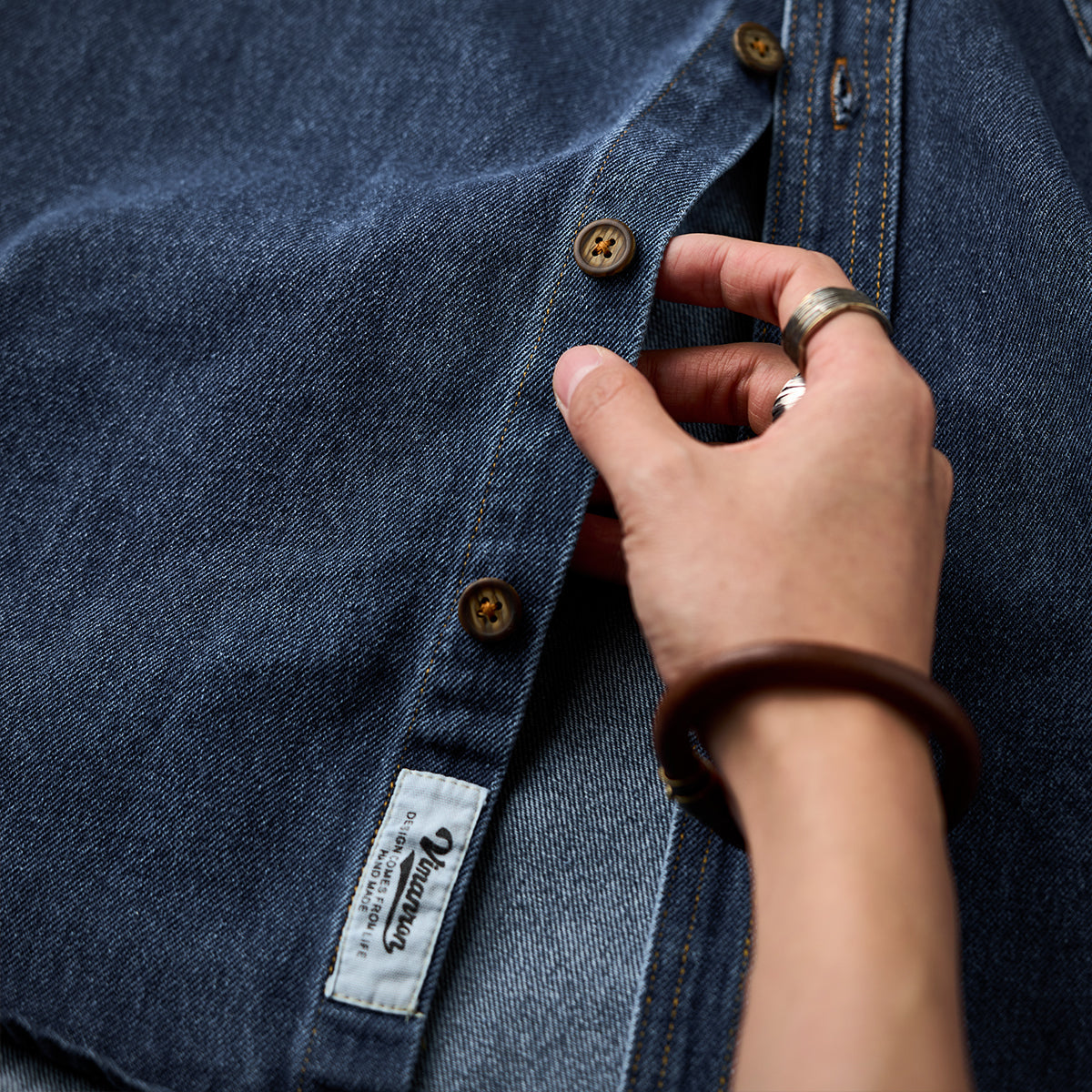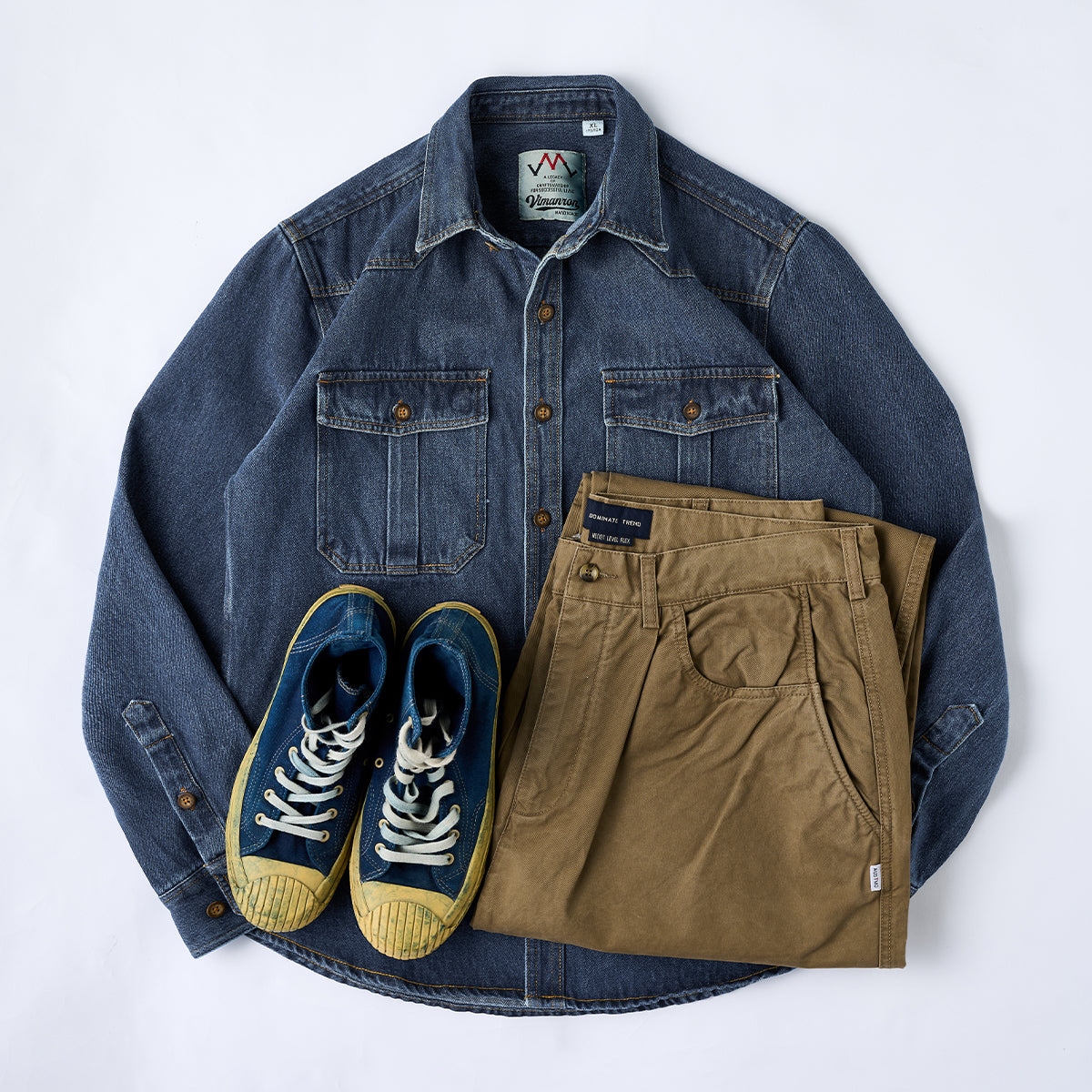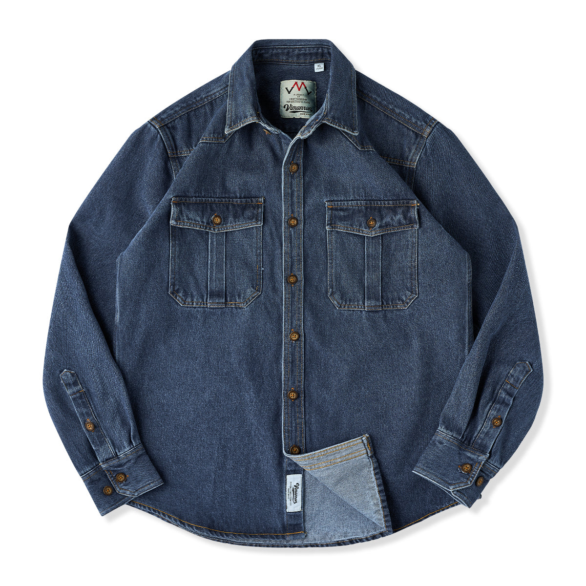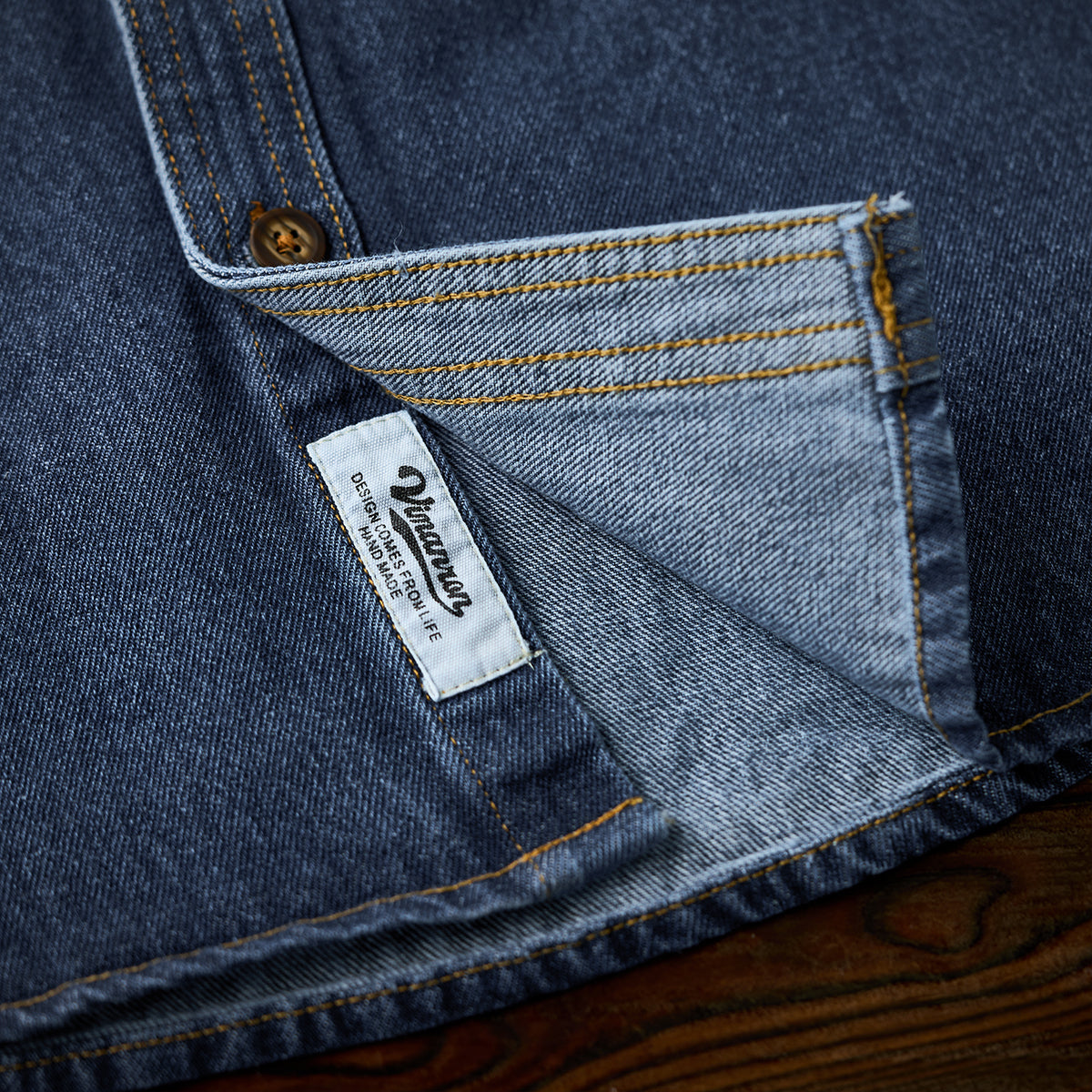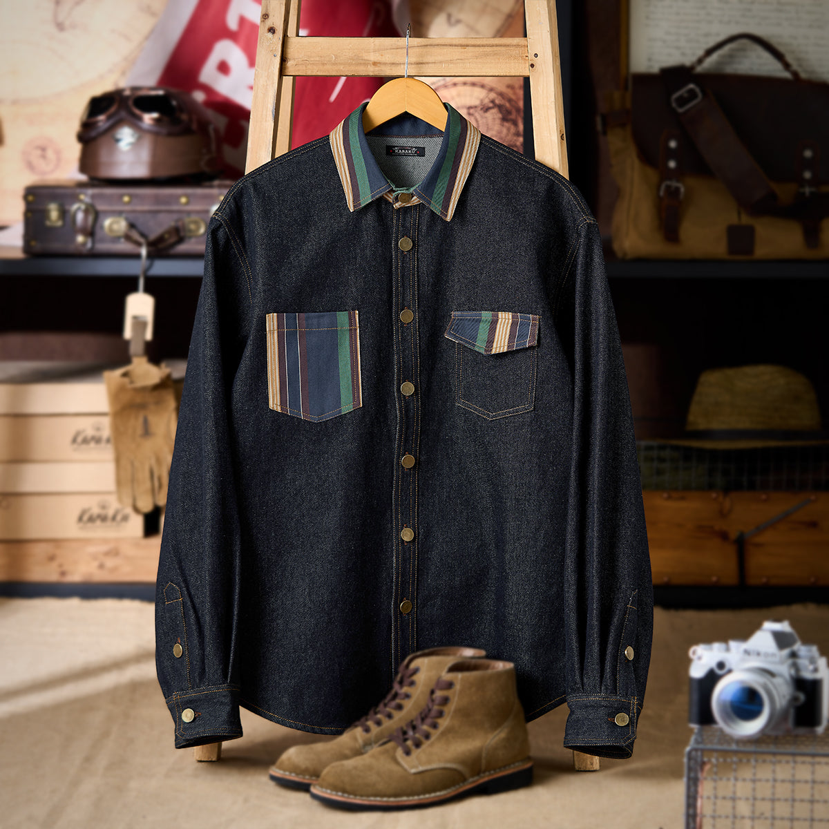 【사전예약】코듀로이 칼라 배색 헤링본 자카드 직조 데님 워크 셔츠