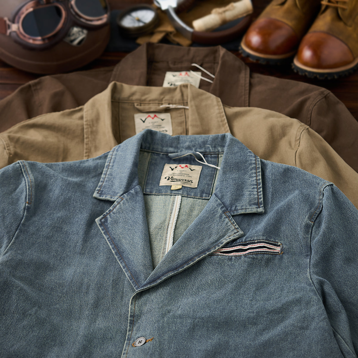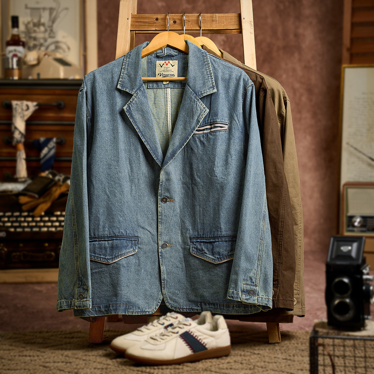 3컬러 워시드 가공 데님 테일러드 자켓