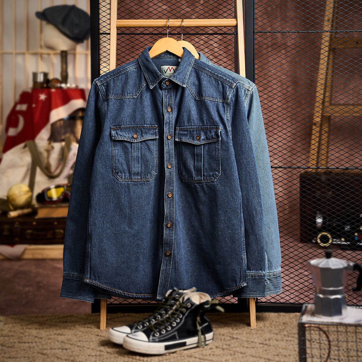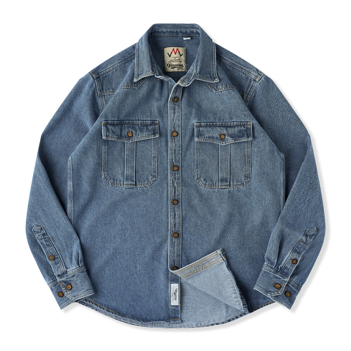 웨스턴 요크 프리티드 포켓 데님 워크 셔츠