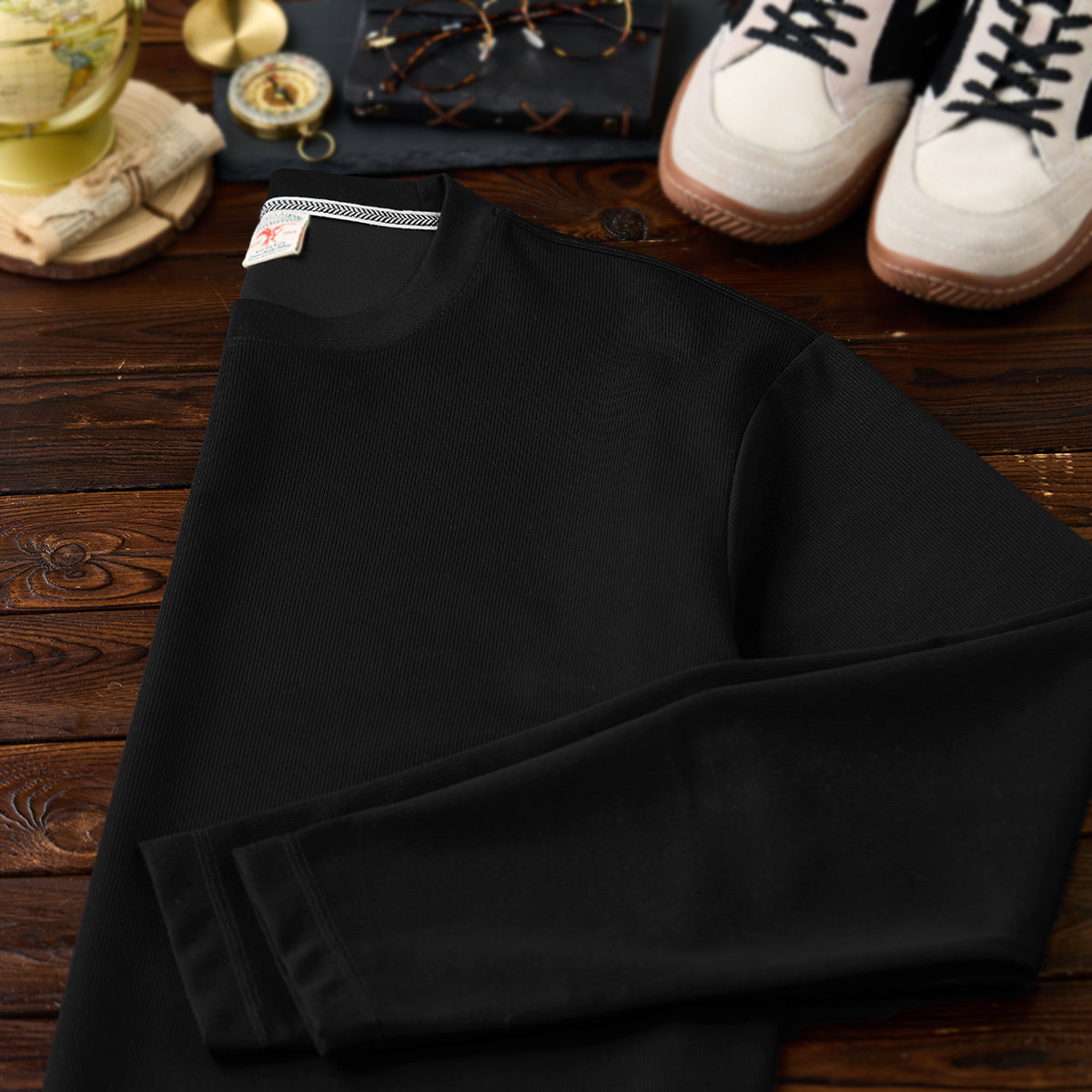 빨간 매듭 끈 팔꿈치 스웨이드 패치 기모 안감 크루넥 스웨트셔츠