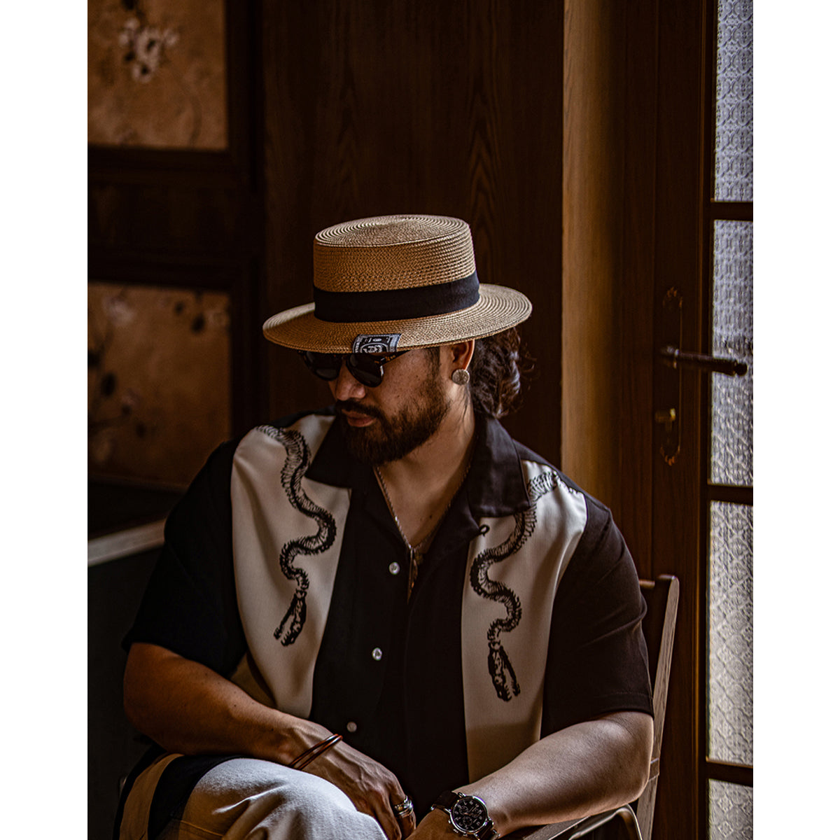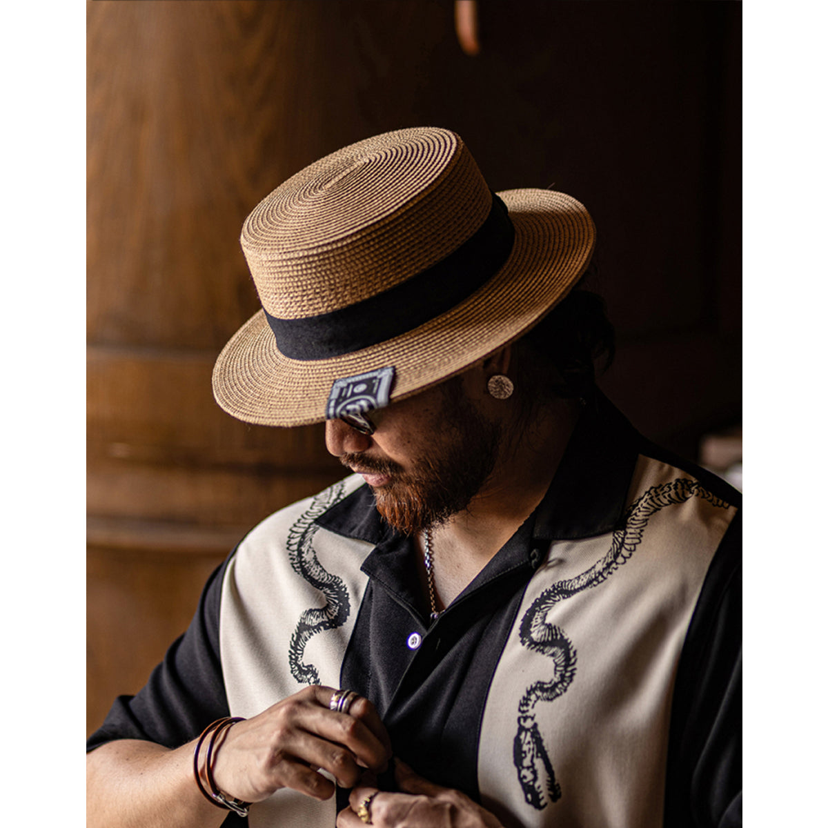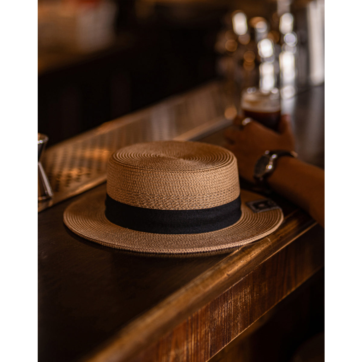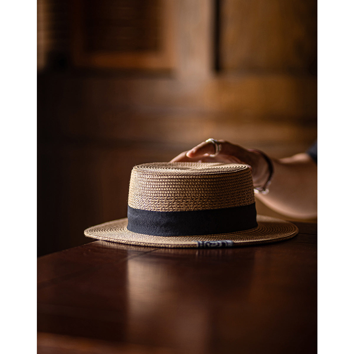 전통적인 평평한 크라운과 부림 실루엣이 클래식한 매력을 더해, 다양한 스타일에 자연스럽게 어울립니다.