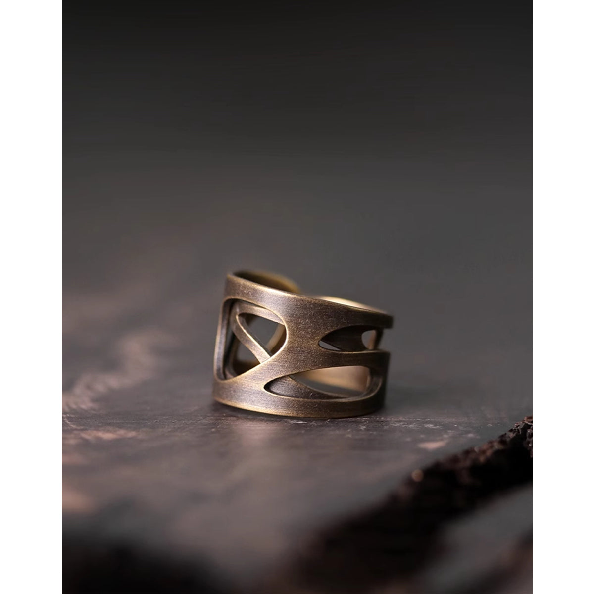 스카시 디테일과 헤어라인 가공이 어우러진 앤티크 황동 반지. 시간이 지날수록 깊어지는 에이징이 빈티지한 멋을 더해주며, 손끝에 특별한 감성을 전해줍니다.
