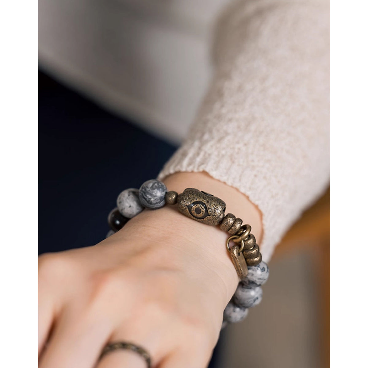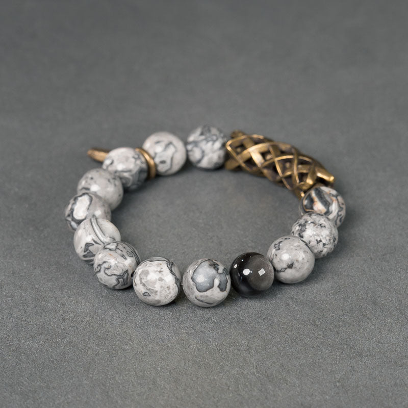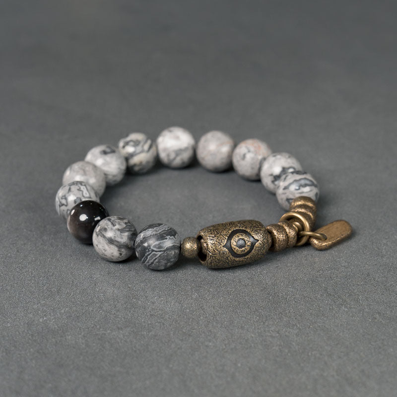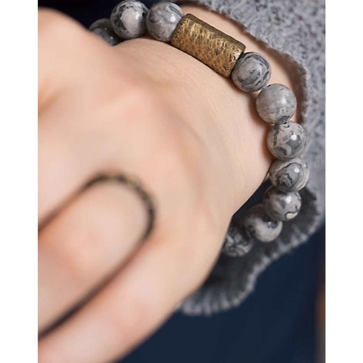 황동 × 흑요석 × 그레이 재스퍼 천연석 팔찌
