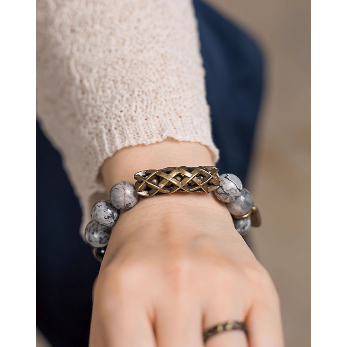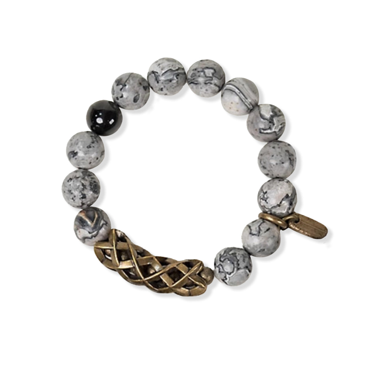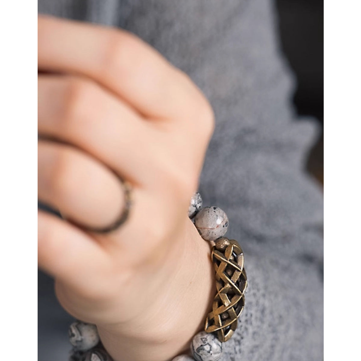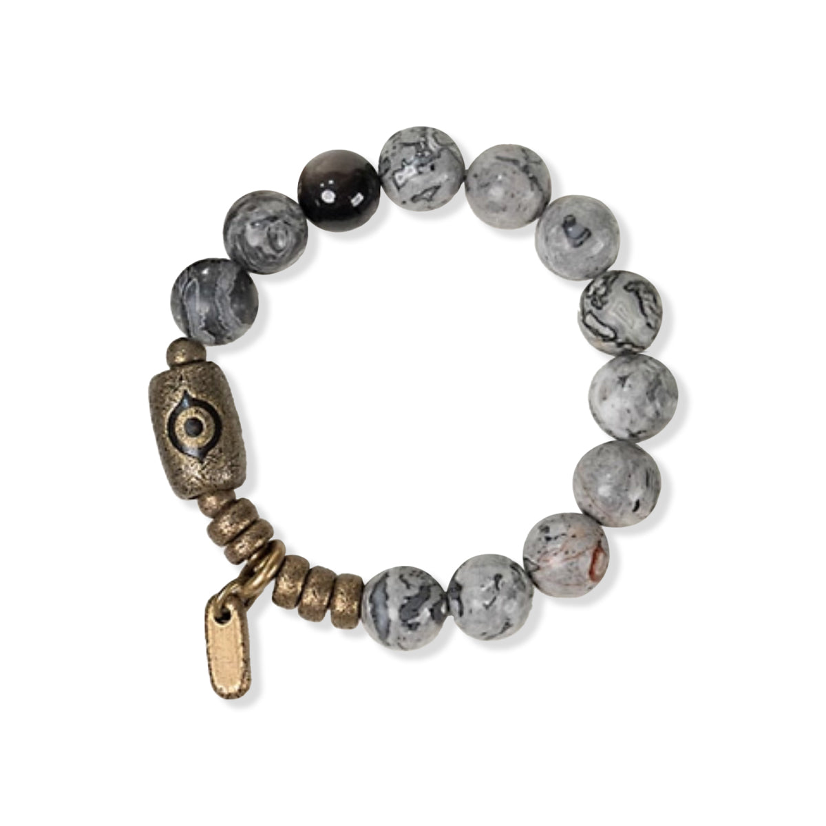 황동 × 흑요석 × 그레이 재스퍼 천연석 팔찌