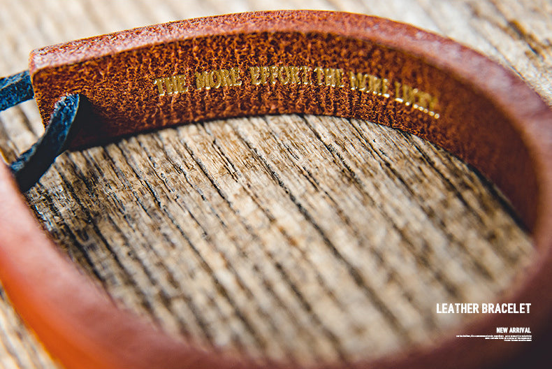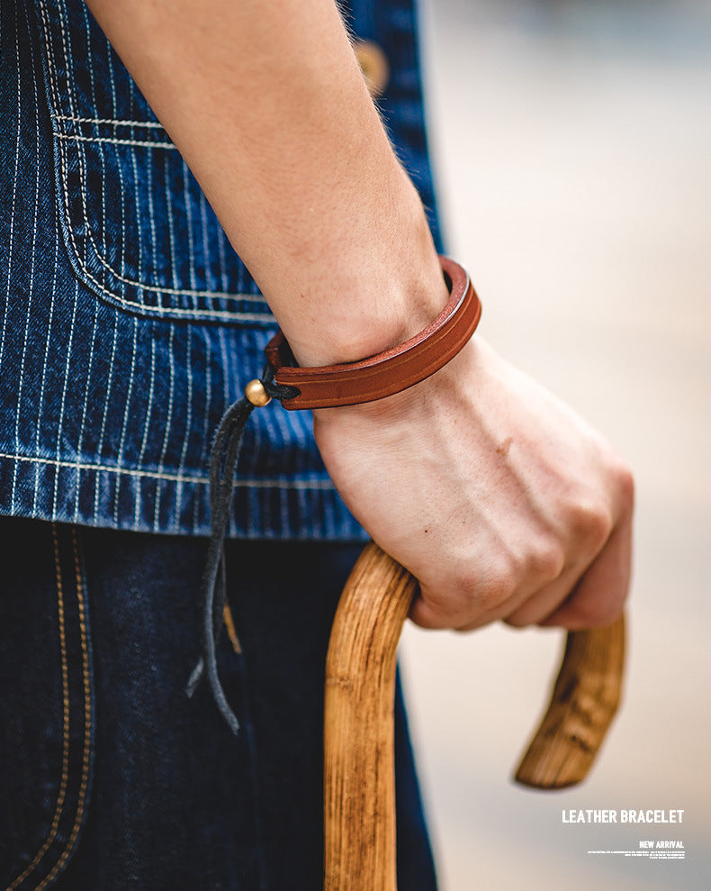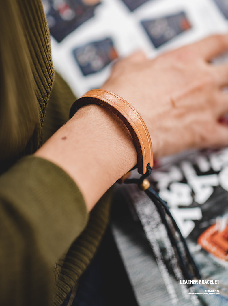코디에 포인트를 추가하고 싶을 때, 액세서리는 필수죠! 자연스러운 분위기의 가죽 팔찌로 스타일을 완성해 보세요.